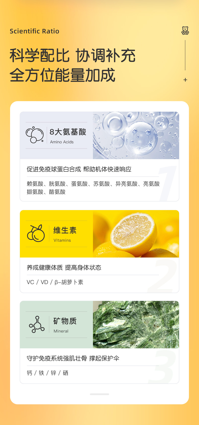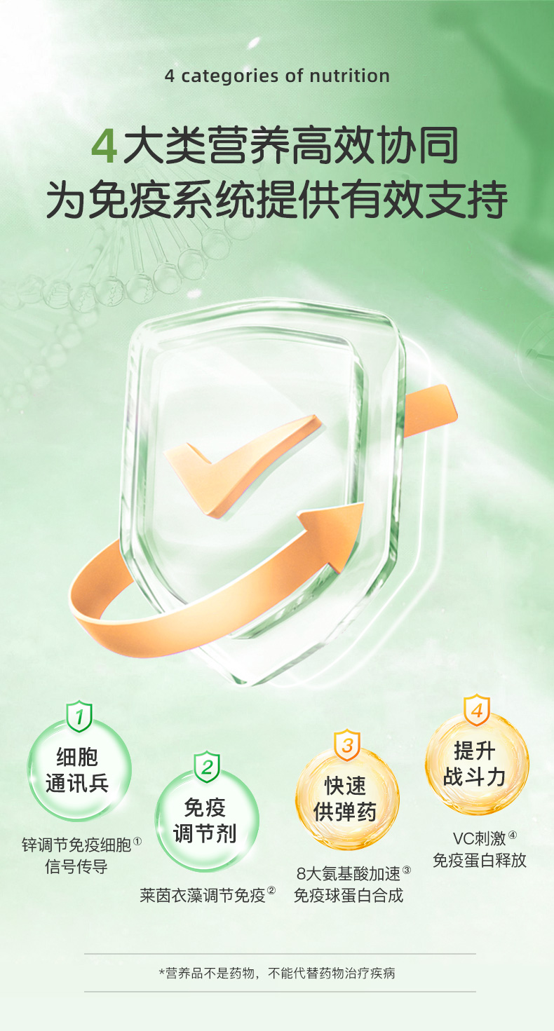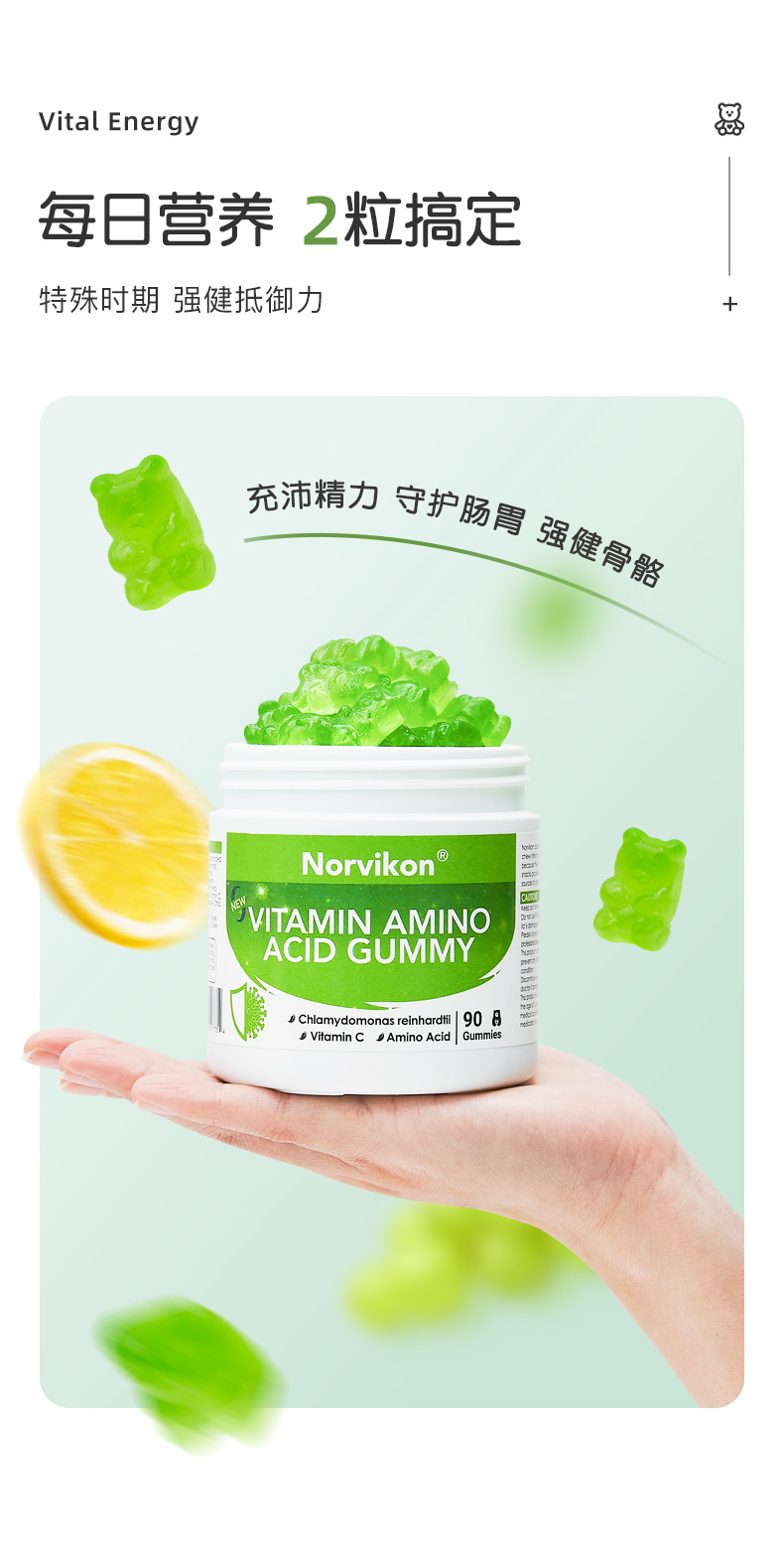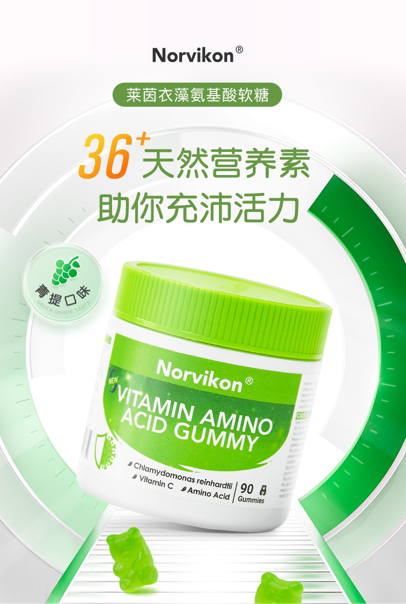 1.莱茵衣藻所含有的蛋白质人体食用可吸收率高达95%以上,全面提高身体免疫力 2.植物蛋白,安全又健康,坚持每天吃2颗软糖,减少心悸、心慌,不再胸闷难受 3.辅助降血糖和增强免疫力的功效,对人类肠道不适有着缓解作用 4.不仅添加了硬核的莱茵衣藻及8大氨基酸,还拥有多种复合维生素、矿物质