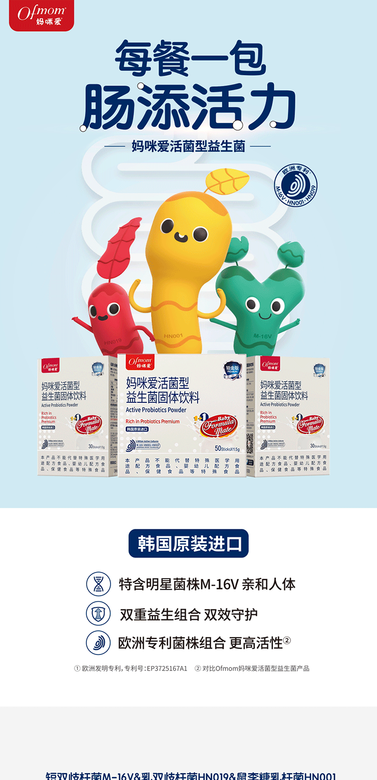 韩国妈咪爱 益生菌 奶粉伴侣 30条装 天然无添加,适用新生儿,每100克出厂添加500亿活菌,益生菌,能够起到平衡肠道菌群的作用,是宝宝肠道健康的小卫士。本产品不能代替特殊医学用途配方食品、婴幼儿配方食品、保健食品等特殊食品。