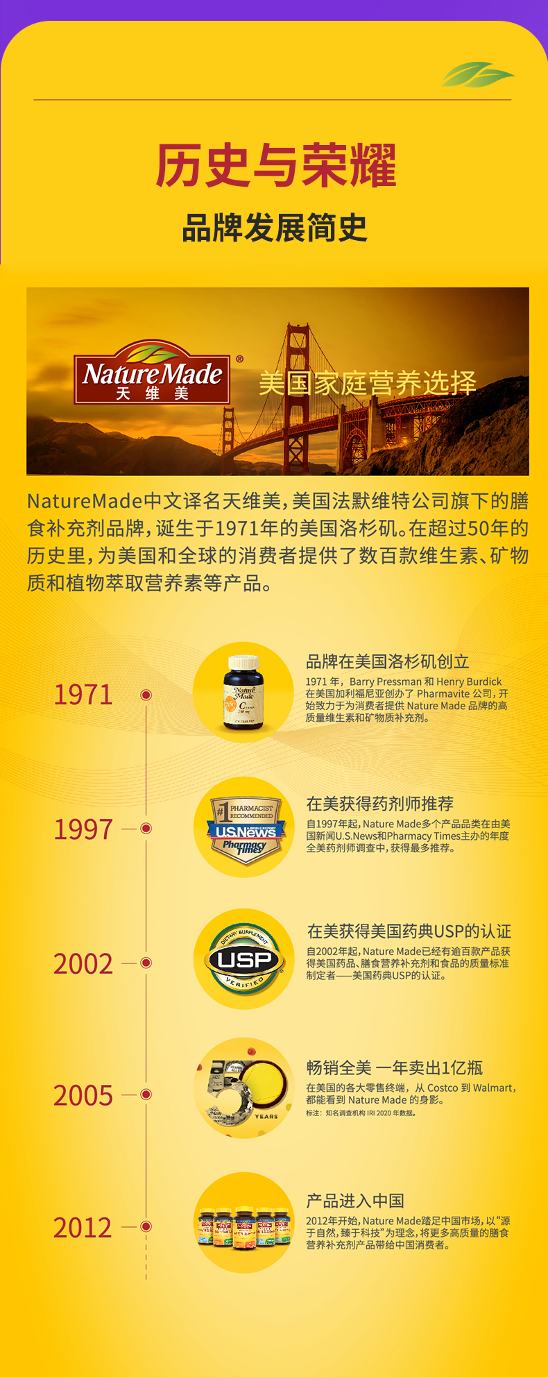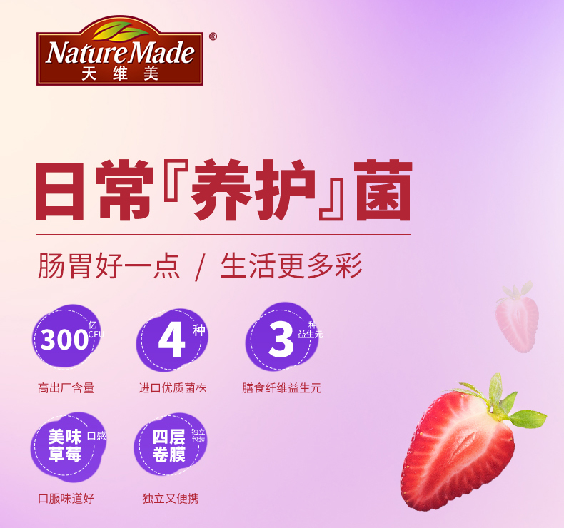 是世界知名保健品品牌,畅销世界40多个国家。其生产的150多种产品,经美国药典USP及GMP的双重严格质量保证。莱萃美产品无添加防腐剂、香料、人工色素、甘味剂等:不会造成身体负担,“NatureMade莱萃美”可以给您带来纯净的高品质健康生活。