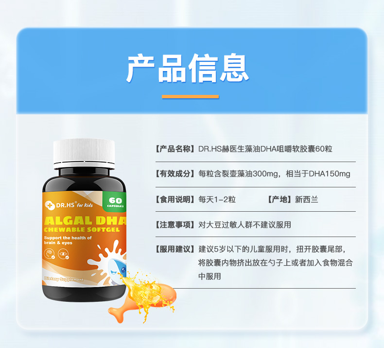 乐佳善优DHA藻油软胶囊60粒15.9g新包装,0岁以上适用,美国原装进口