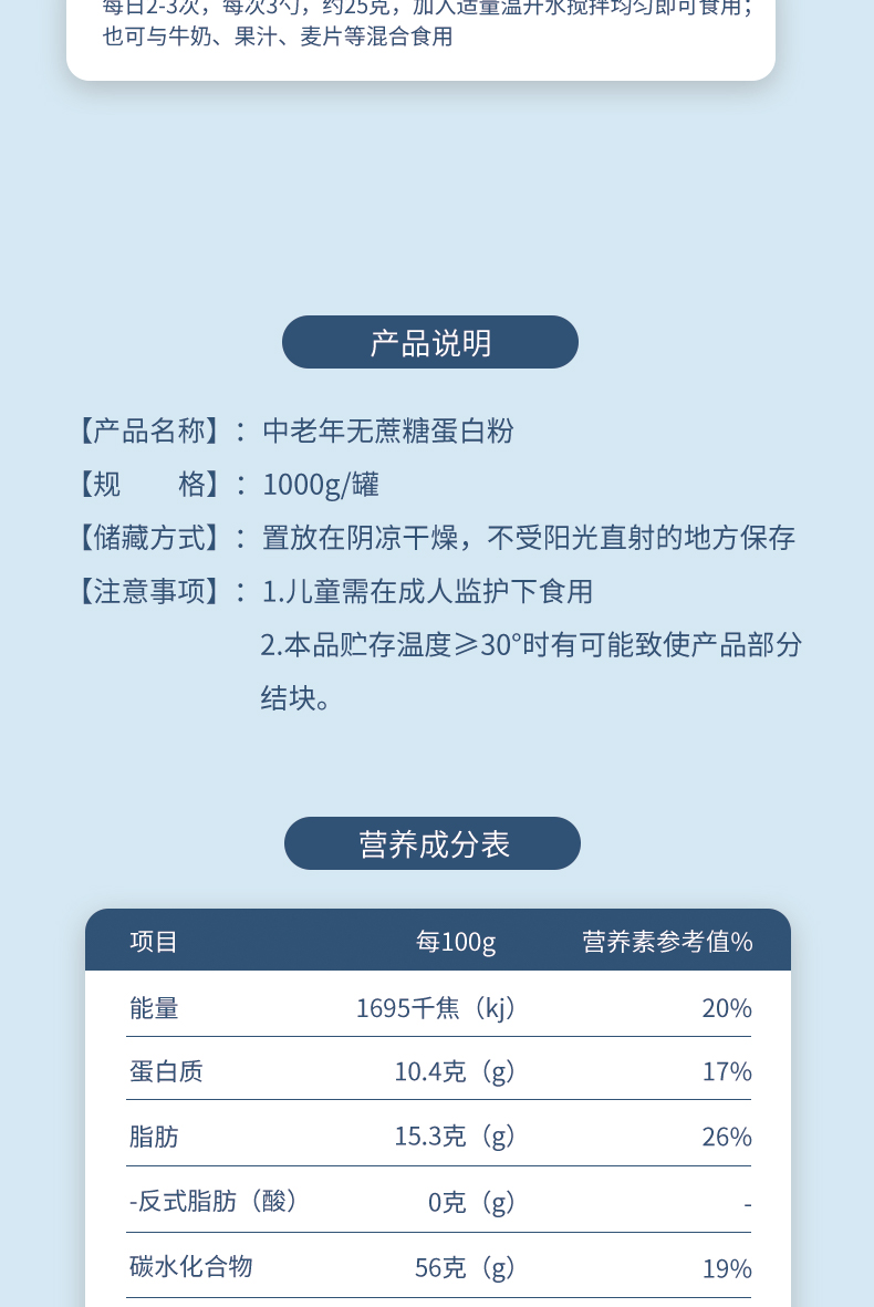 康恩贝乳清营养蛋白粉100g/罐蛋白质粉女性老年人营养补品官方正品