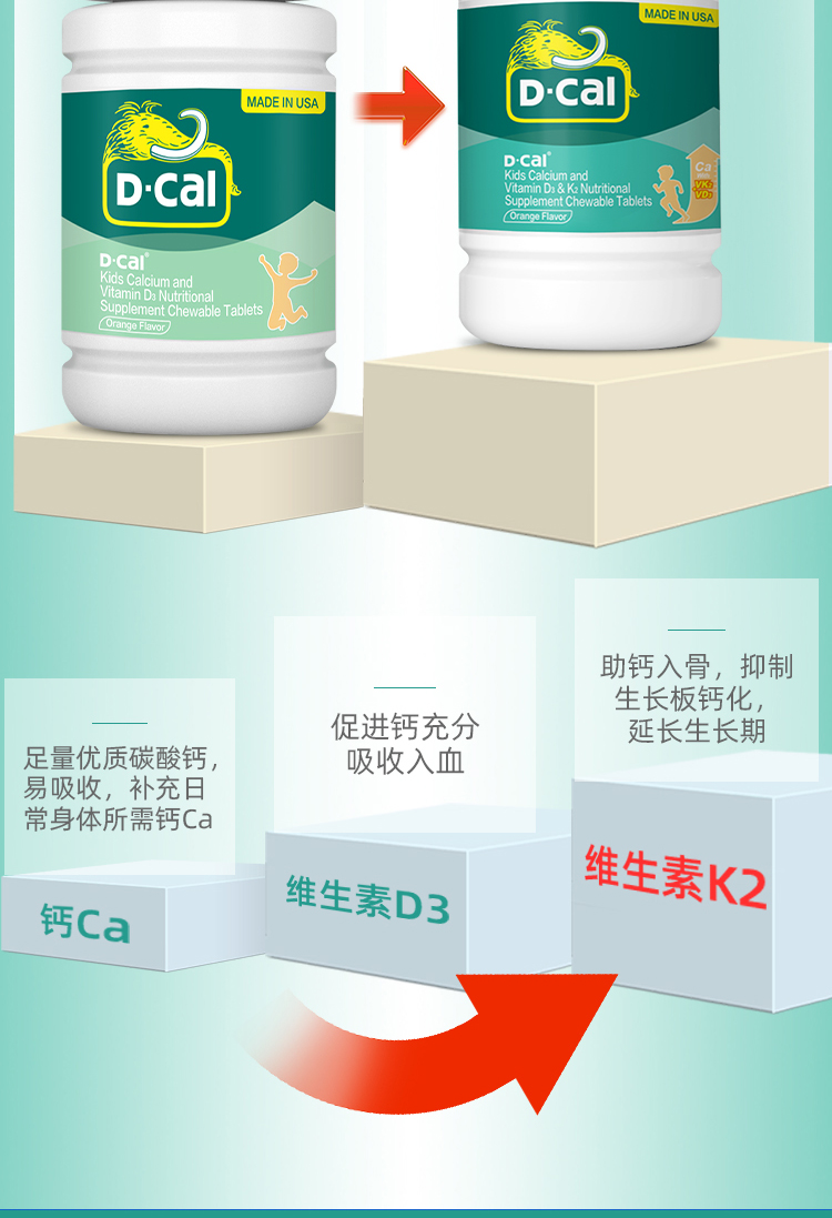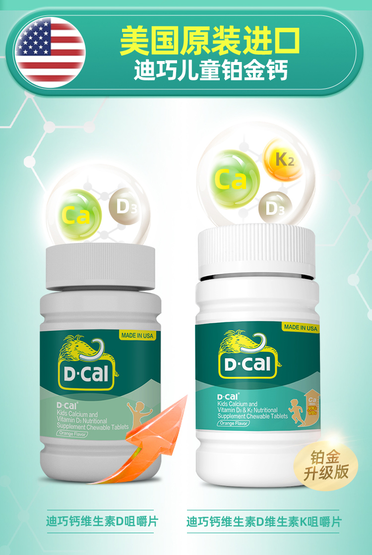 美国 D-CAL迪巧小黄条乳钙液体钙婴幼儿童补钙宝宝乳钙婴儿钙液体钙片d3中文标签