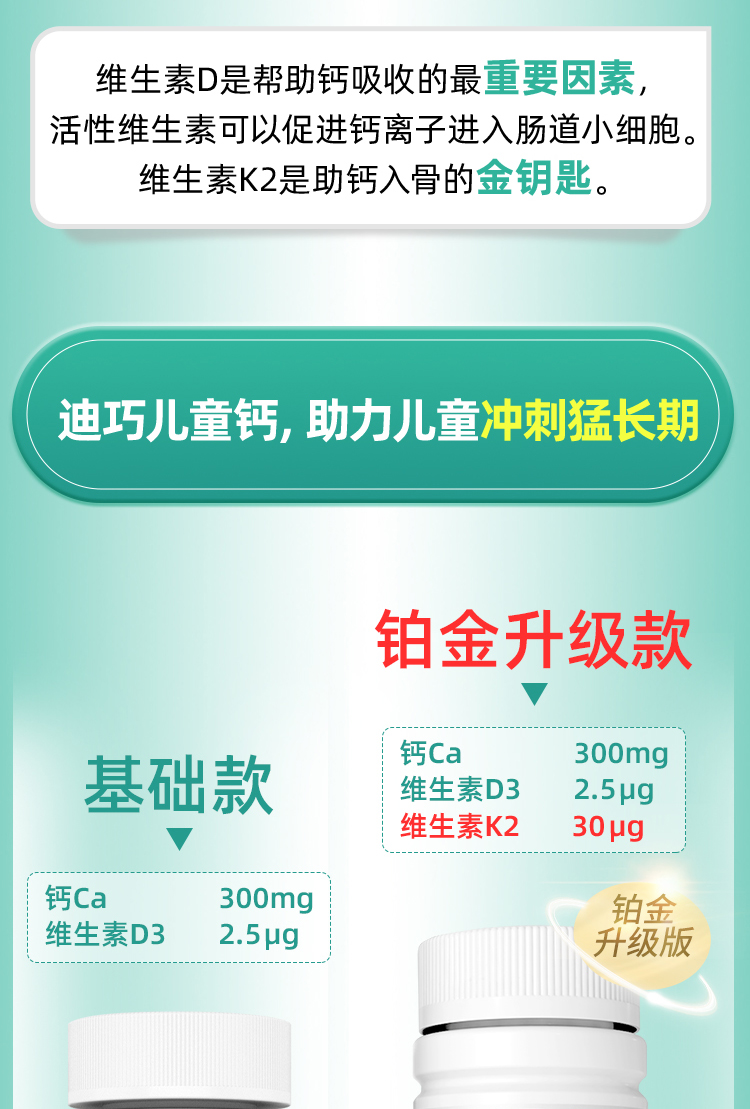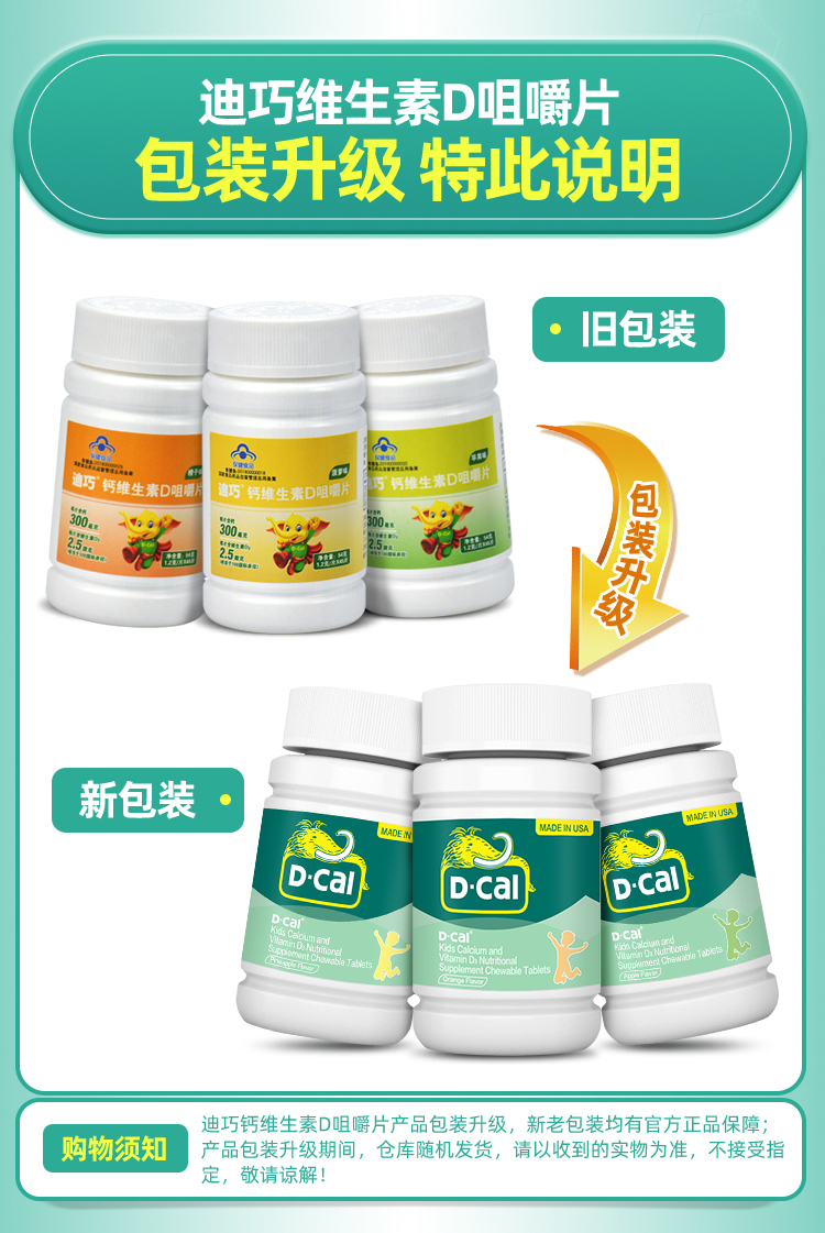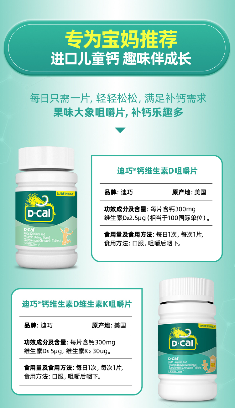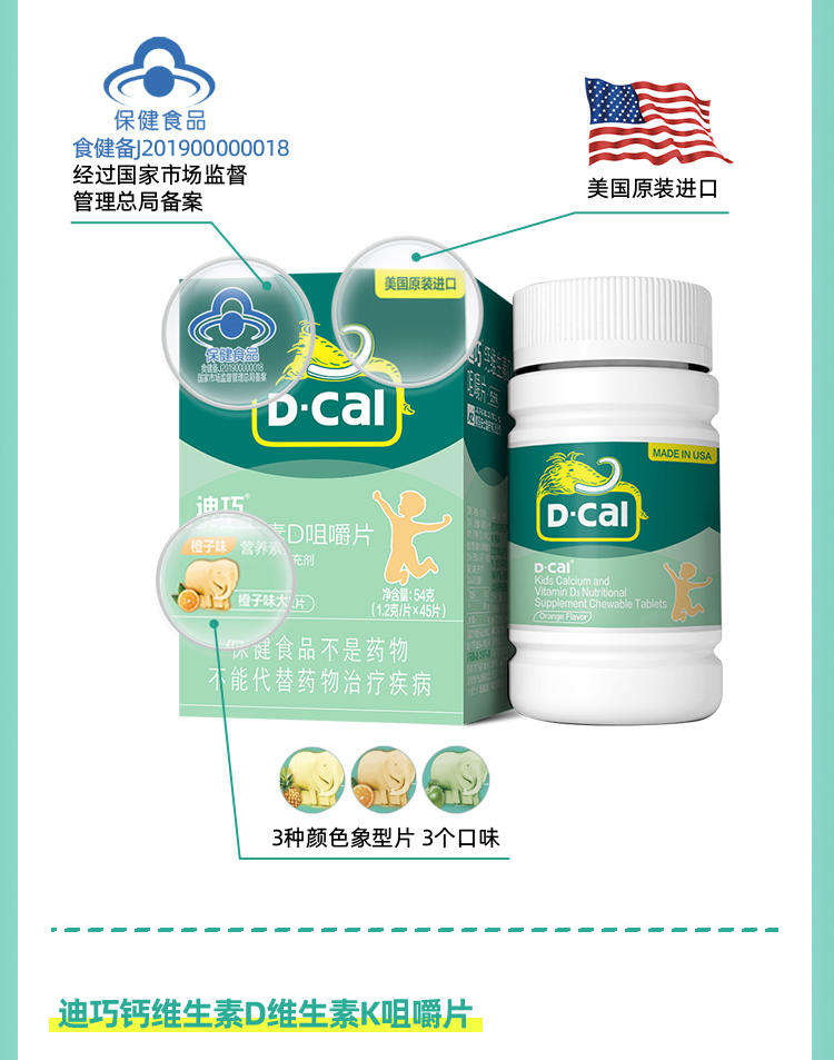 迪巧(D-cal)儿童钙片钙维生素D儿童咀嚼片 宝宝儿童青少年补钙 三种口味1.2g*45片