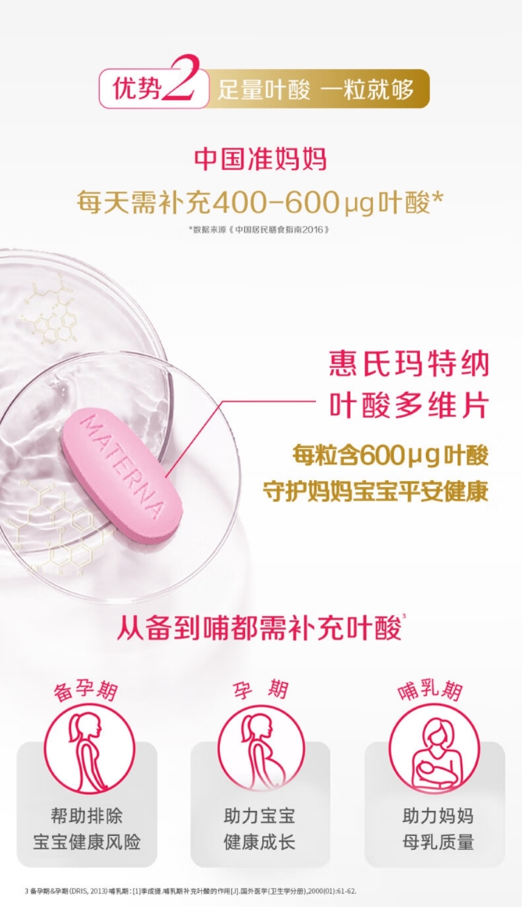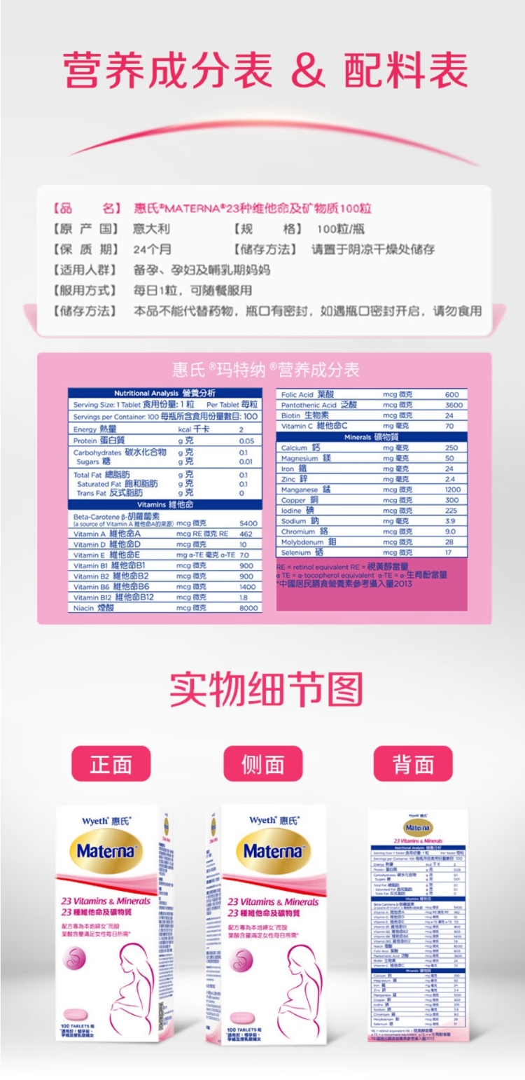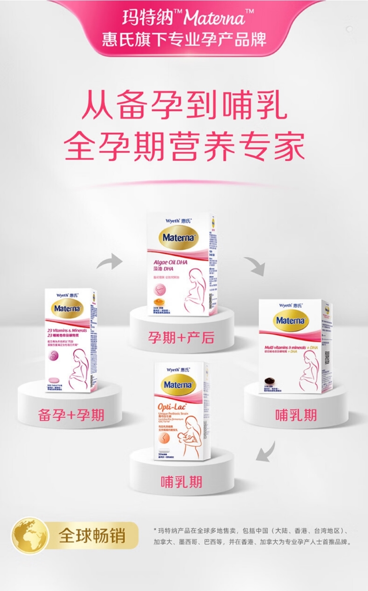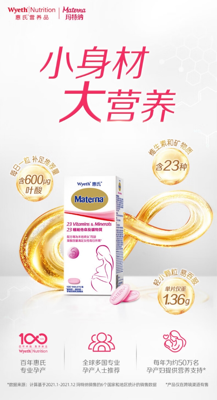 惠氏玛特纳孕妇维生素 补充维生素c 叶酸 钙铁锌硒 孕期妈妈备孕期哺乳期 (60天量)