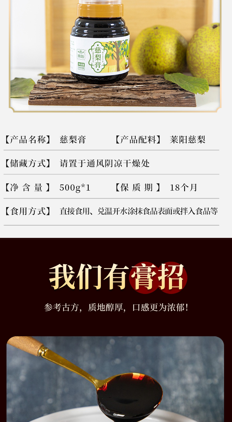 燕丝路 莱阳慈梨膏 秋梨膏正宗产地 山东特产 古法纯梨膏无添加蔗糖 500g