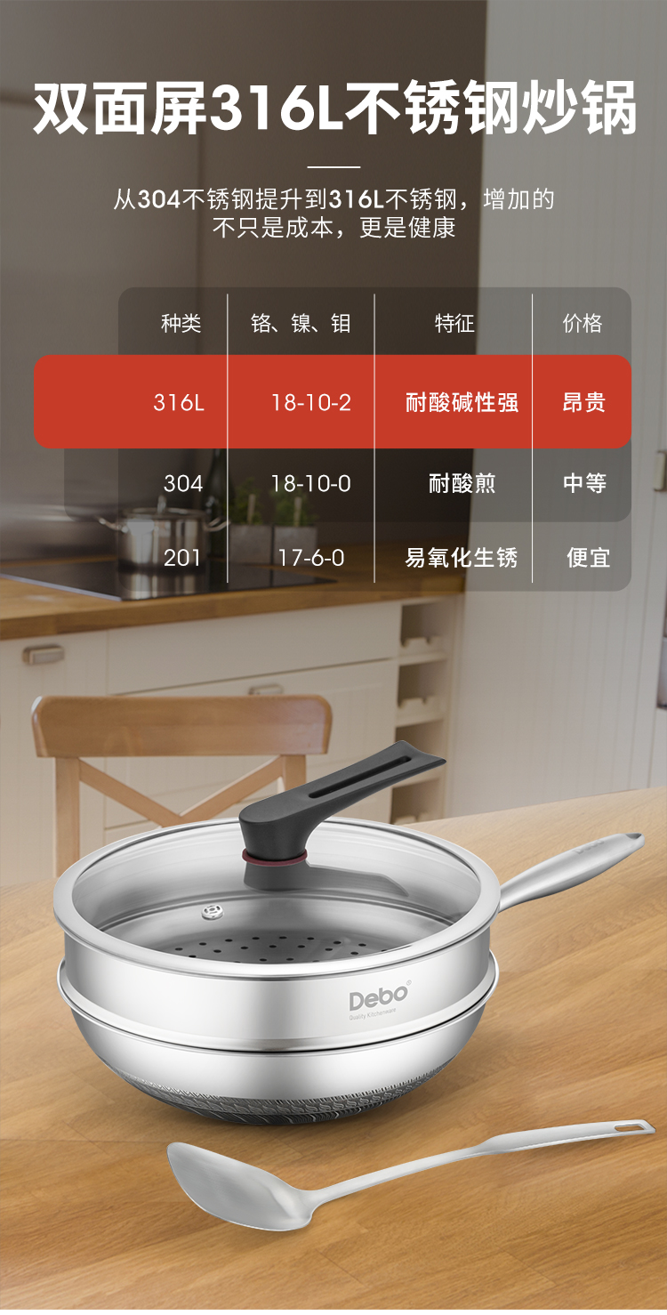 【新品】德铂debo 24CM欧岱拉无涂层炒锅炒菜锅 无涂层 精巧加深