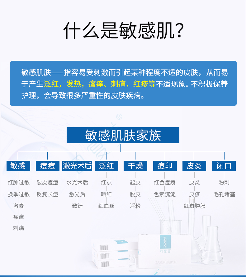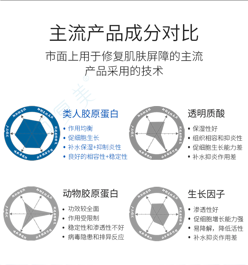 主要成分类人胶原蛋白与人体同源的活性科研精粹,缓解敏感肌肤术后修复,促进细胞生长,减轻色素沉着