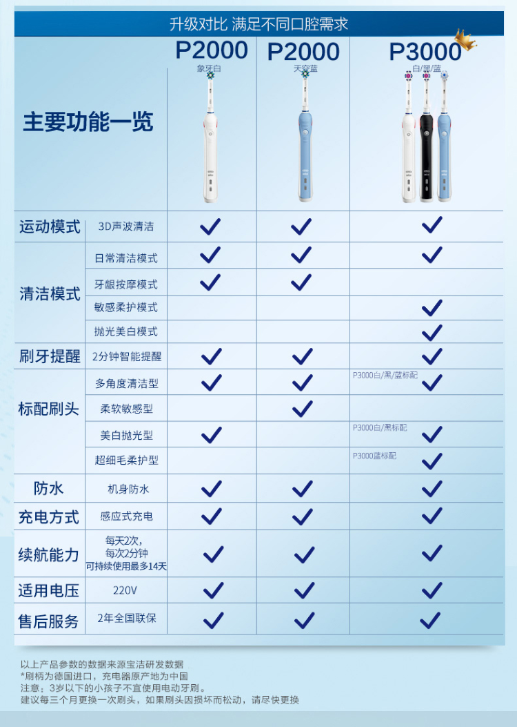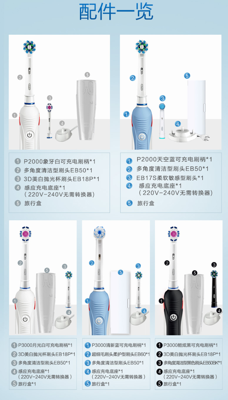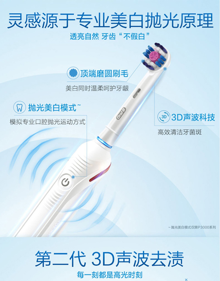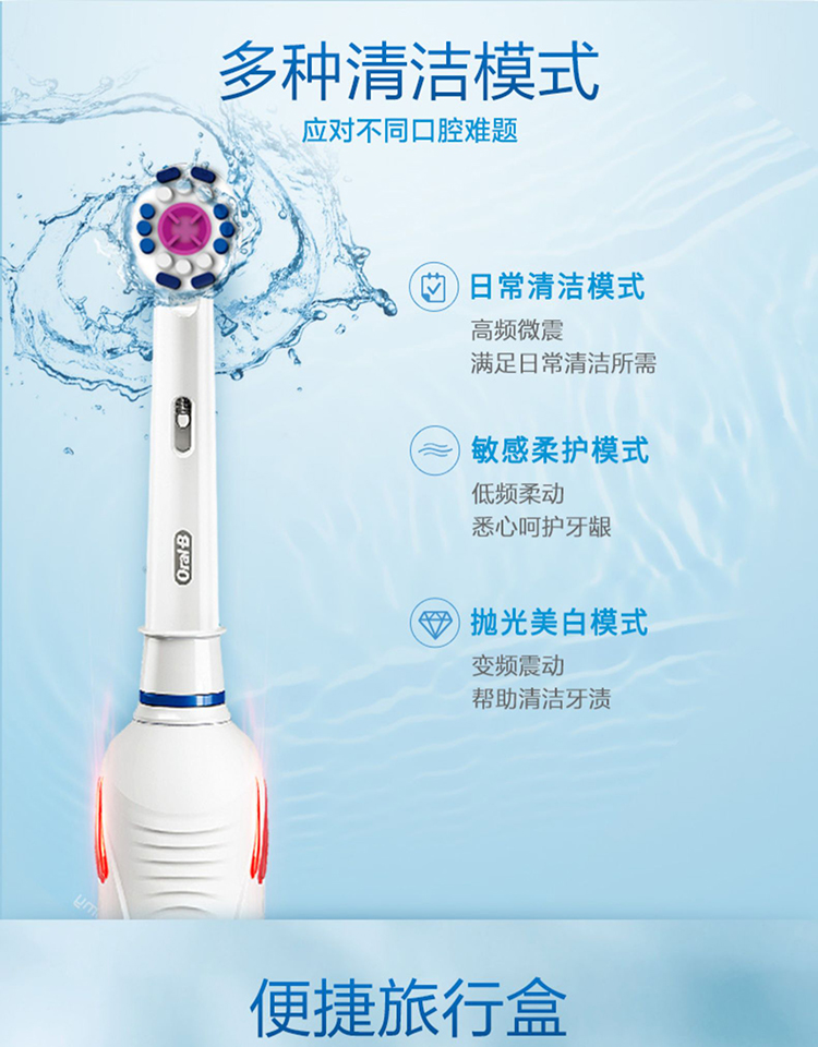 OralB欧乐B电动牙刷Pro2000男女情侣成人款声波刷头软毛充电式牙刷