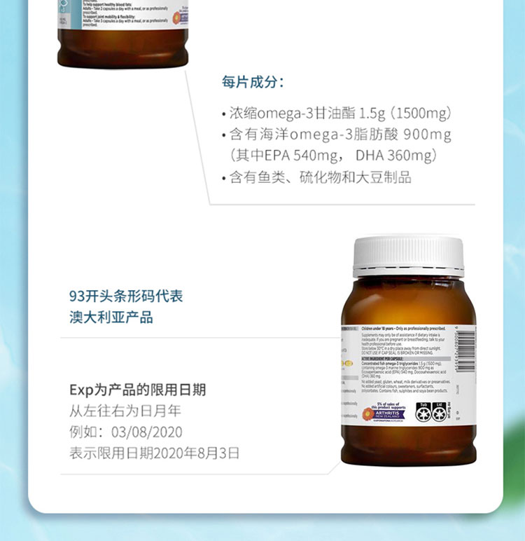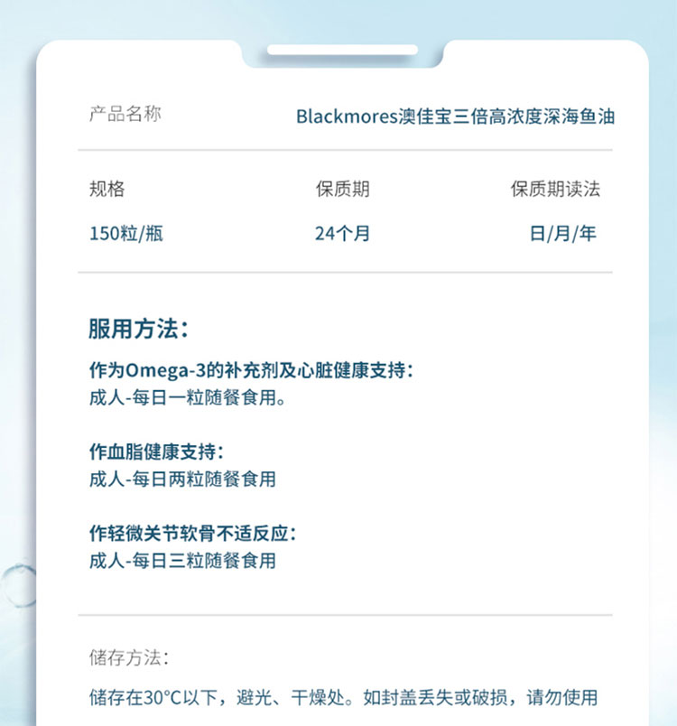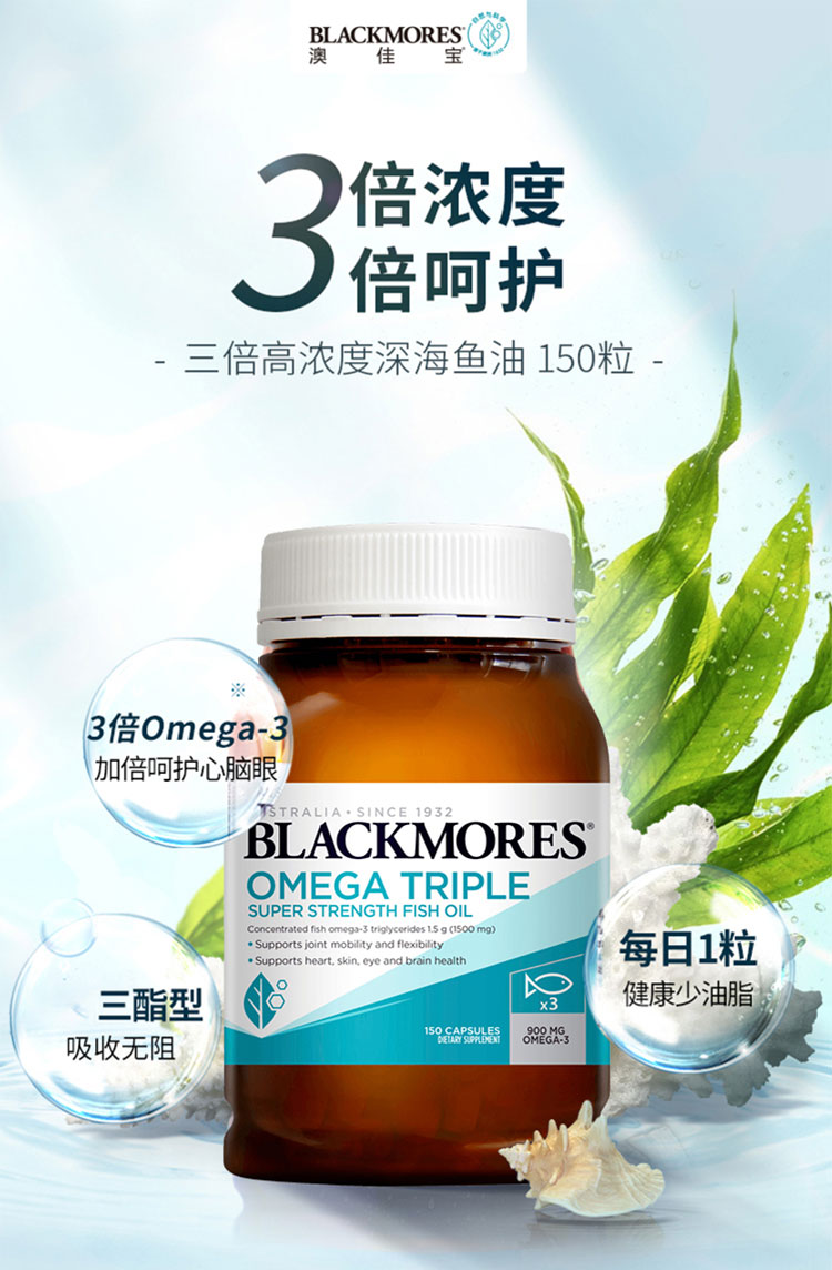 澳洲Blackmores澳佳宝 4倍高浓度DHA 深海鱼油软胶囊无腥味60粒