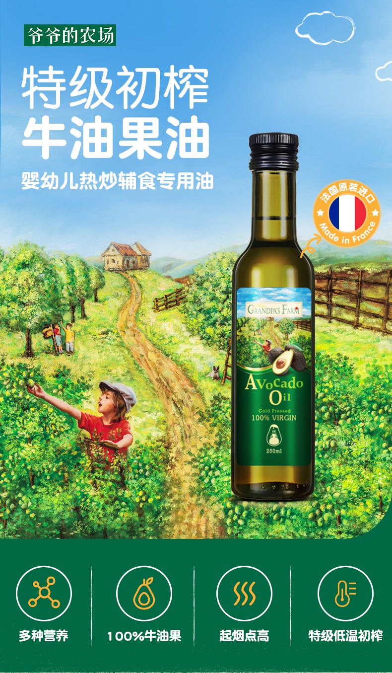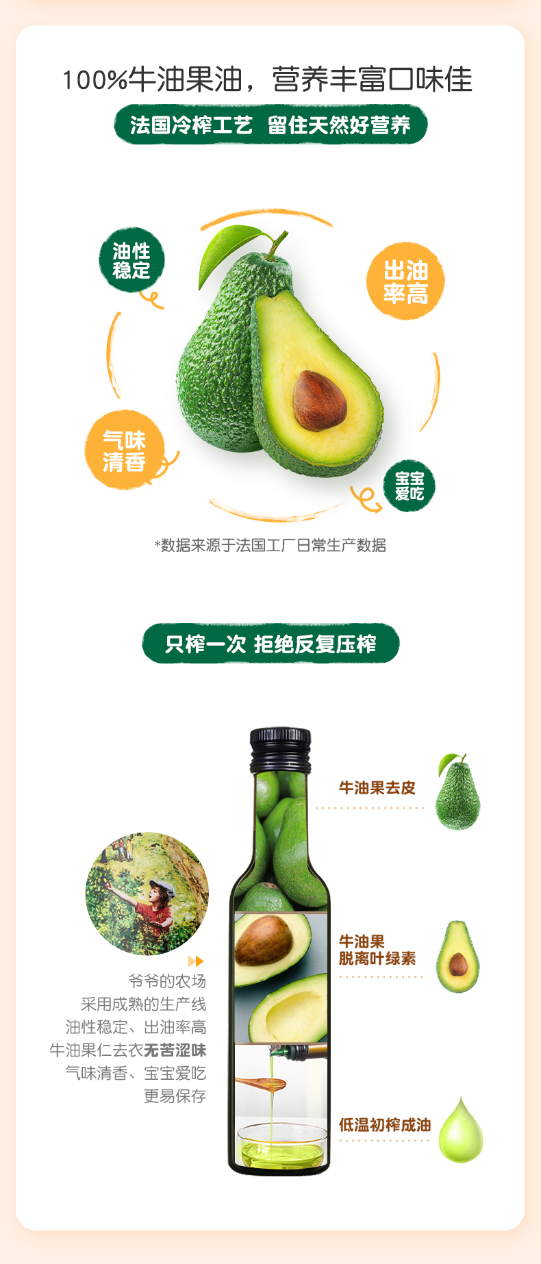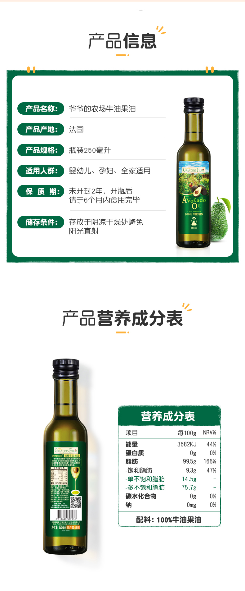 法国爷爷的农场-牛油果油250ml 宝宝婴幼儿孕妇食用辅食热炒油婴儿辅食油