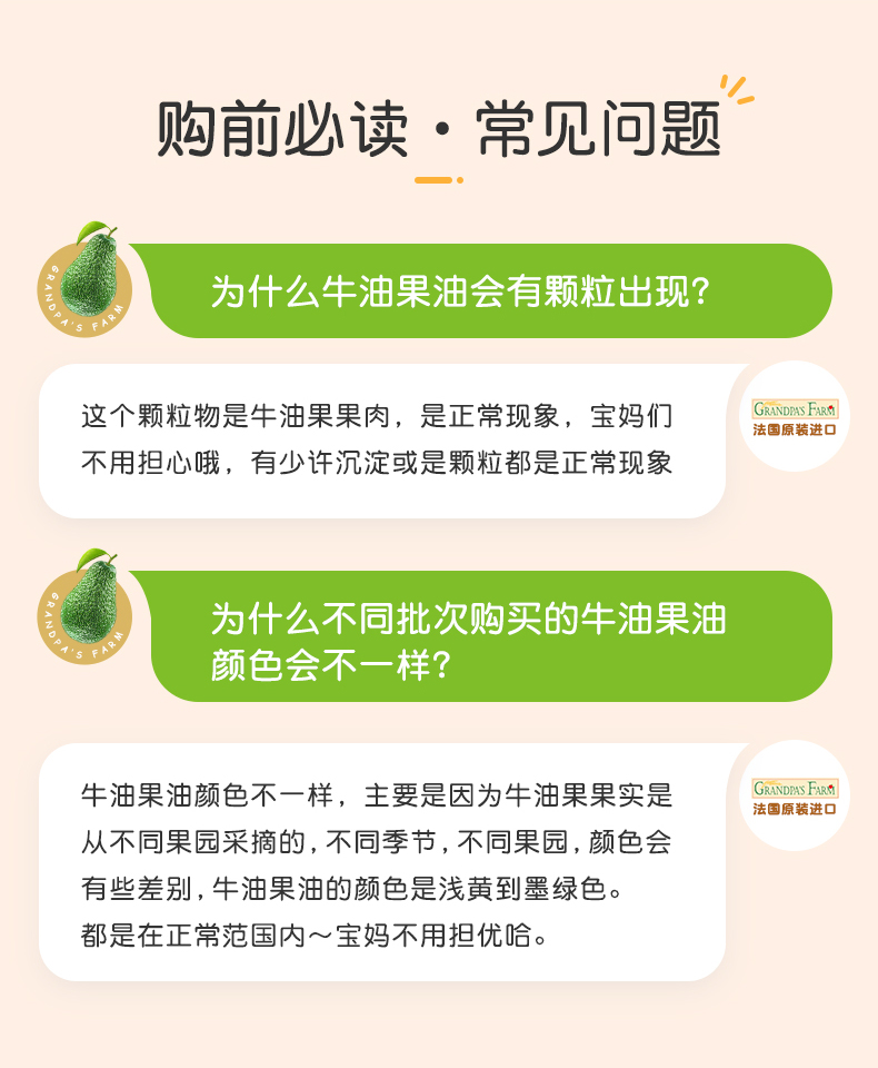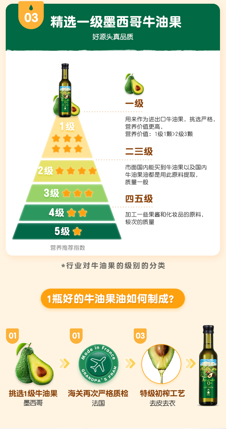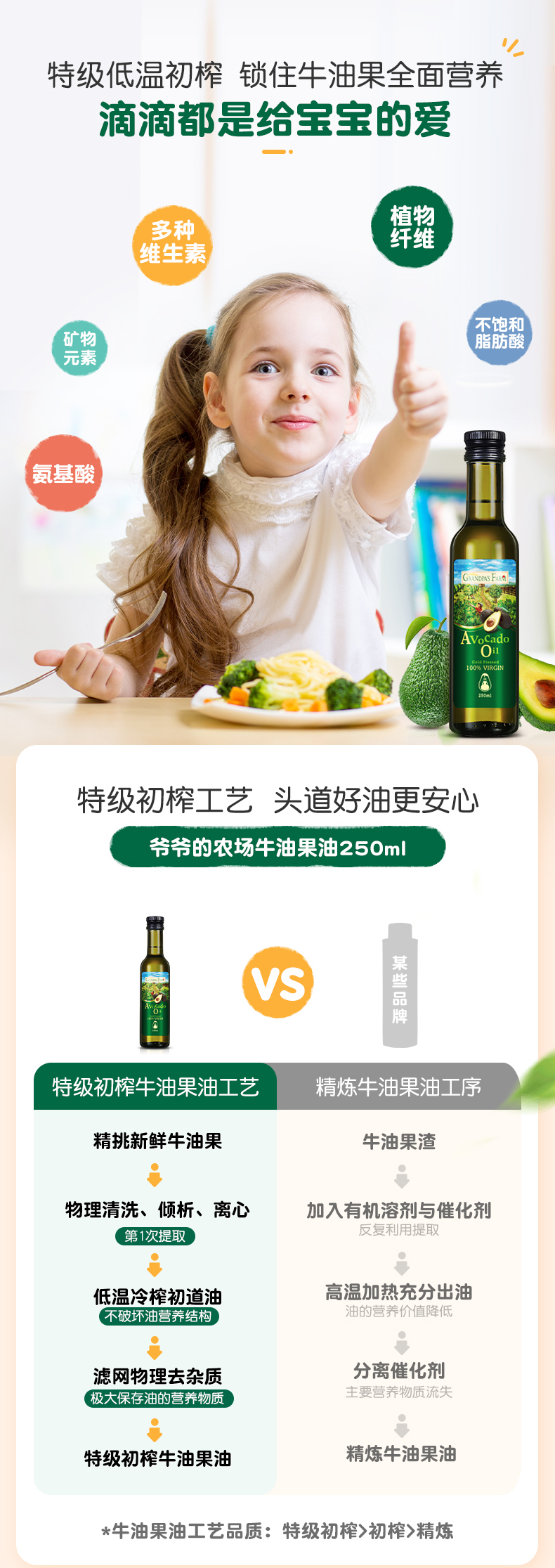 法国爷爷的农场-牛油果油250ml 宝宝婴幼儿孕妇食用辅食热炒油婴儿辅食油
