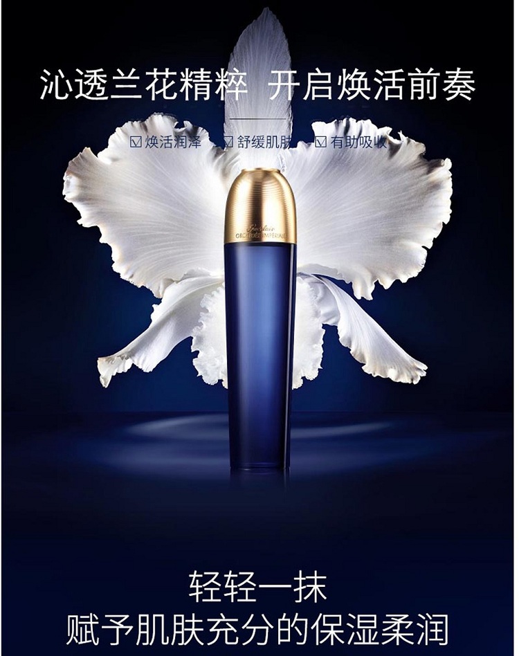 1828年,巴黎一个大胆创新和美丽传承的故事自1828年创牌迄今,法国娇兰不懈致力,在香水、护肤、彩妆领域不断探索、创新和臻善。既是大胆开启梦想之门的行业先驱亦是法国文化遗产宝藏中的一颗璀璨明珠。法国娇兰以自然与艺术为灵感之源,崇尚为人们带来欢乐和感官愉悦的美丽哲学美丽哲学大胆的作品创新是对致以美妙事物与真挚情感的承诺历经近两百年的时光洗礼,法国娇兰对所有与美相关的事物皆情有独钟,为笔触下新鲜流淌的奇思妙想而激动为大胆创新的每一步进阶而欣喜。