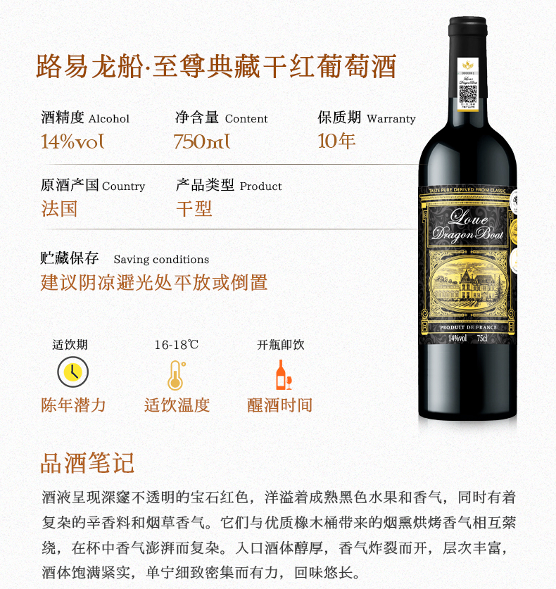 佩里庄园路易龙船法国进口路易龙船干红葡萄酒750ml*6瓶