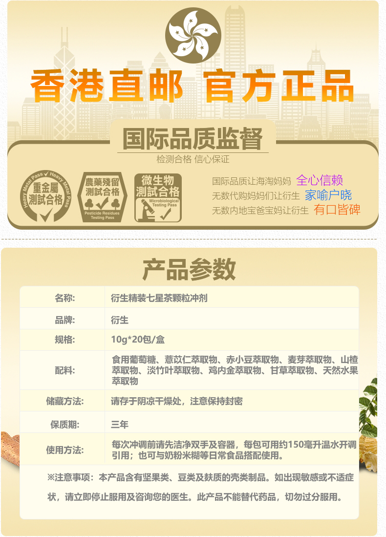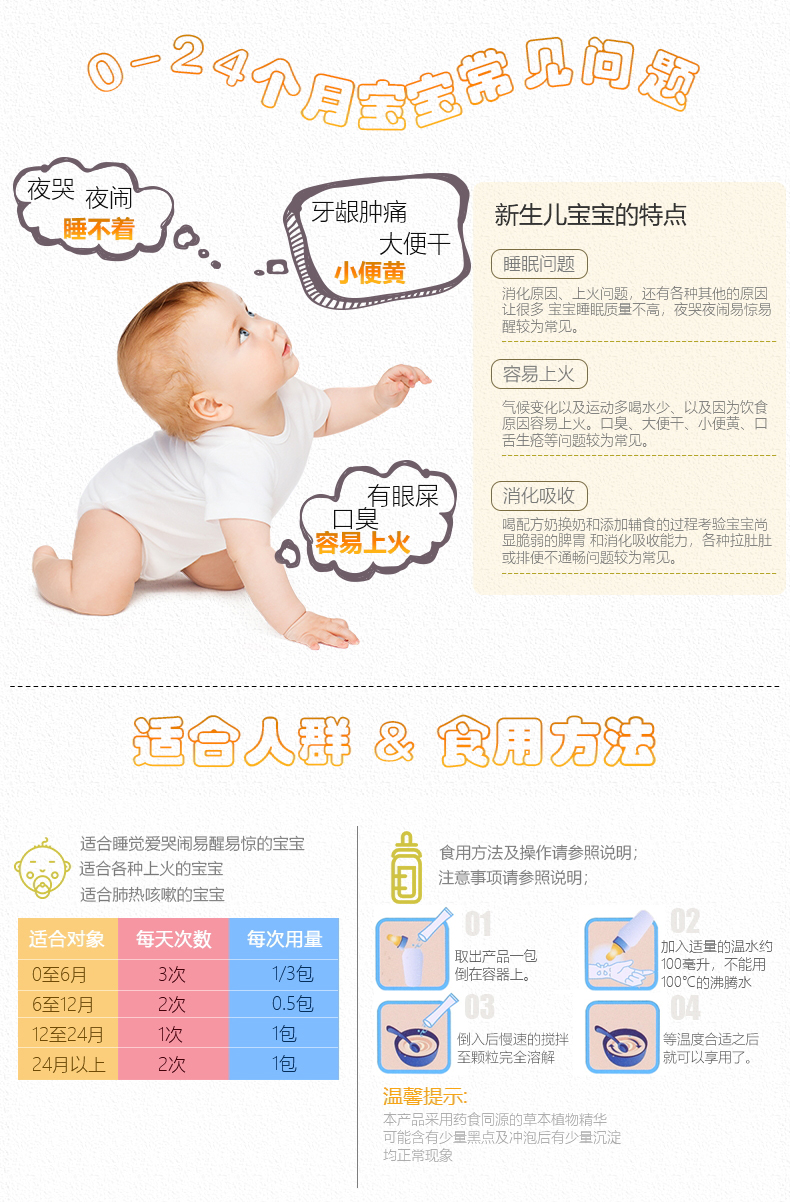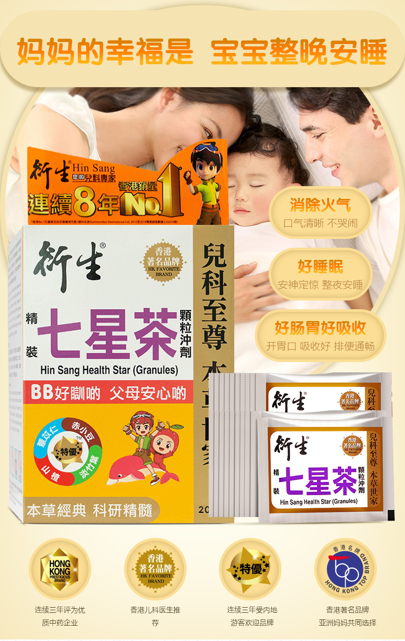 新老随机。衍生七星茶冲剂,精选药食同源的麦芽萃取物、淡竹叶萃取物、鸡内金萃取物等。宝宝睡得好,妈妈心情好。独立包装即冲即饮,方便携带及储存