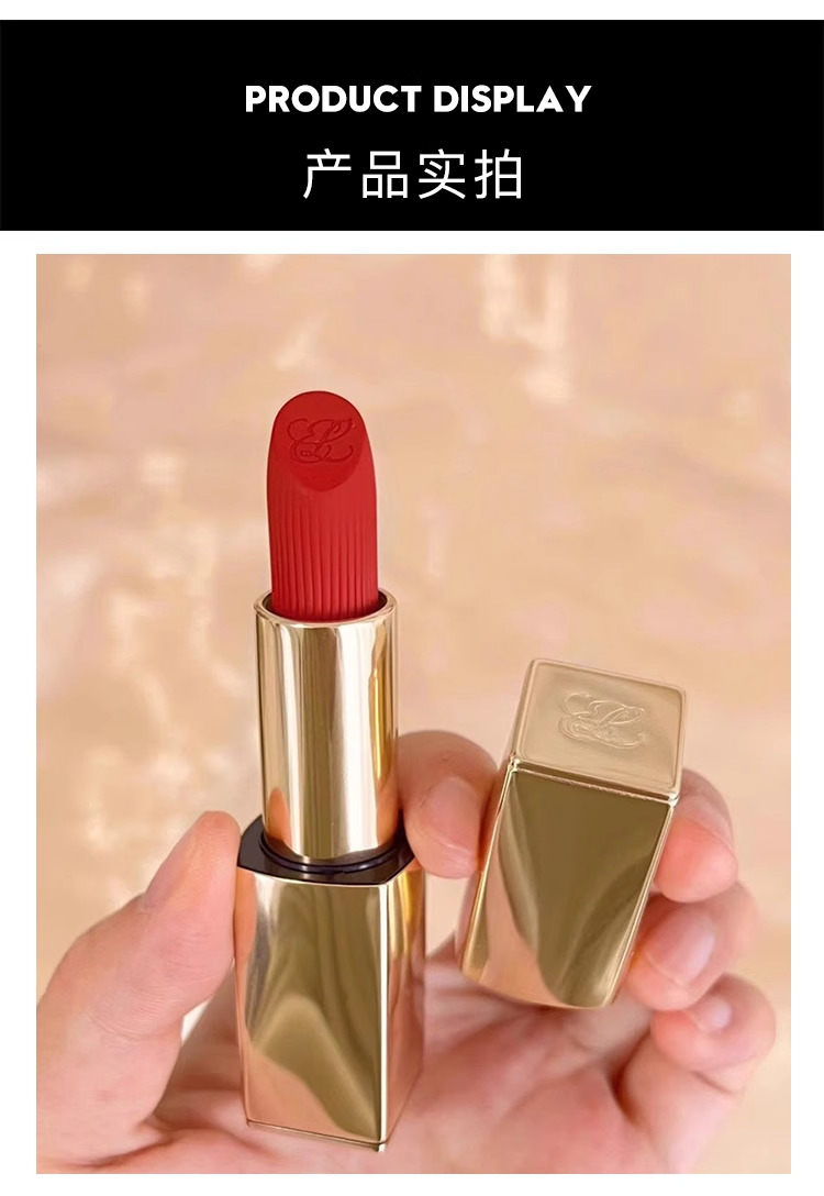 新包装 彰显精致,质感金属外壳 细节满分,高定百褶膏体 焕新唇间绝色,绒雾质地 丝滑哑光,如绒般软糯细腻 似雾般润雅轻盈 10H持色 鲜明浓郁,轻盈持色 上嘴润哑不干,沾杯无痕 精致整日在线。