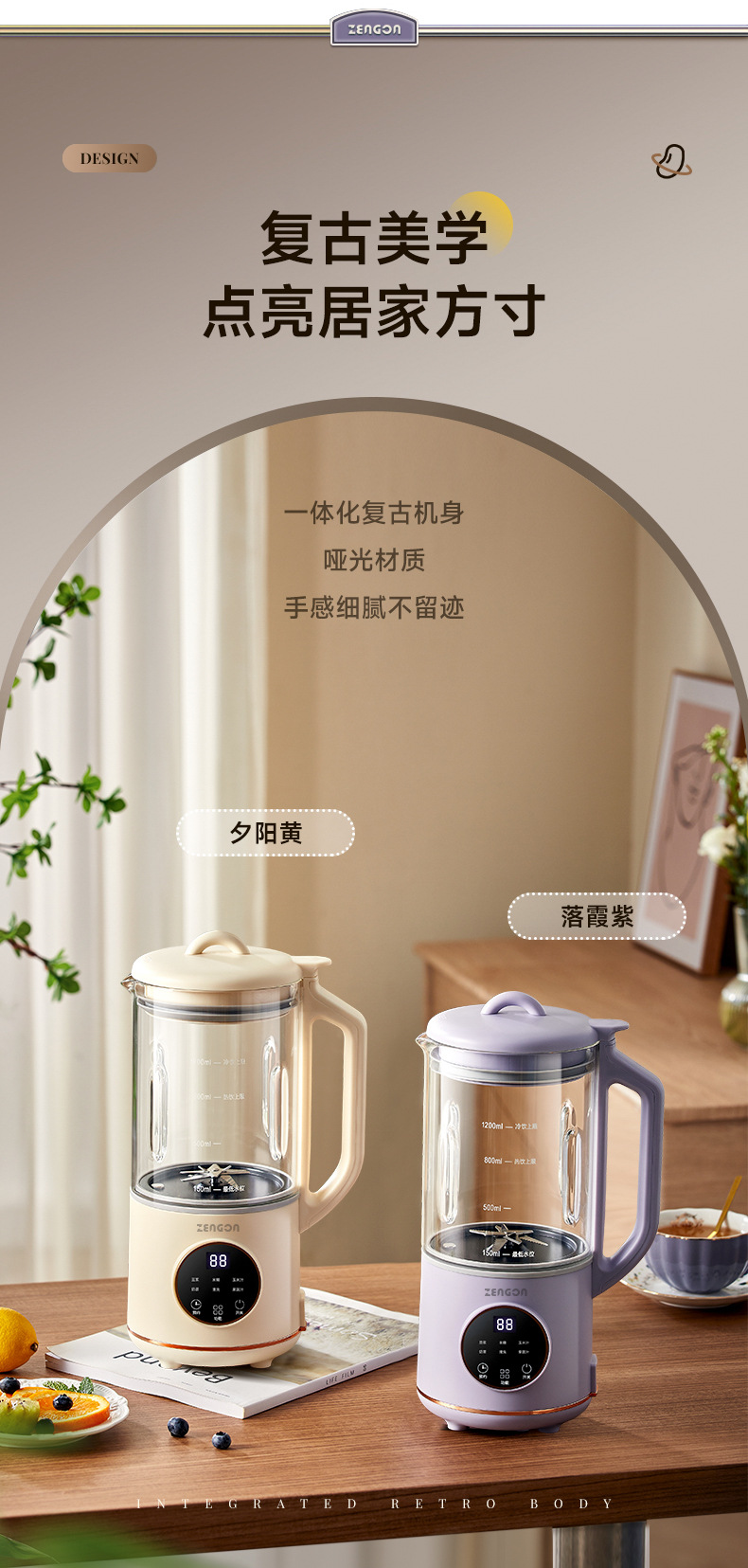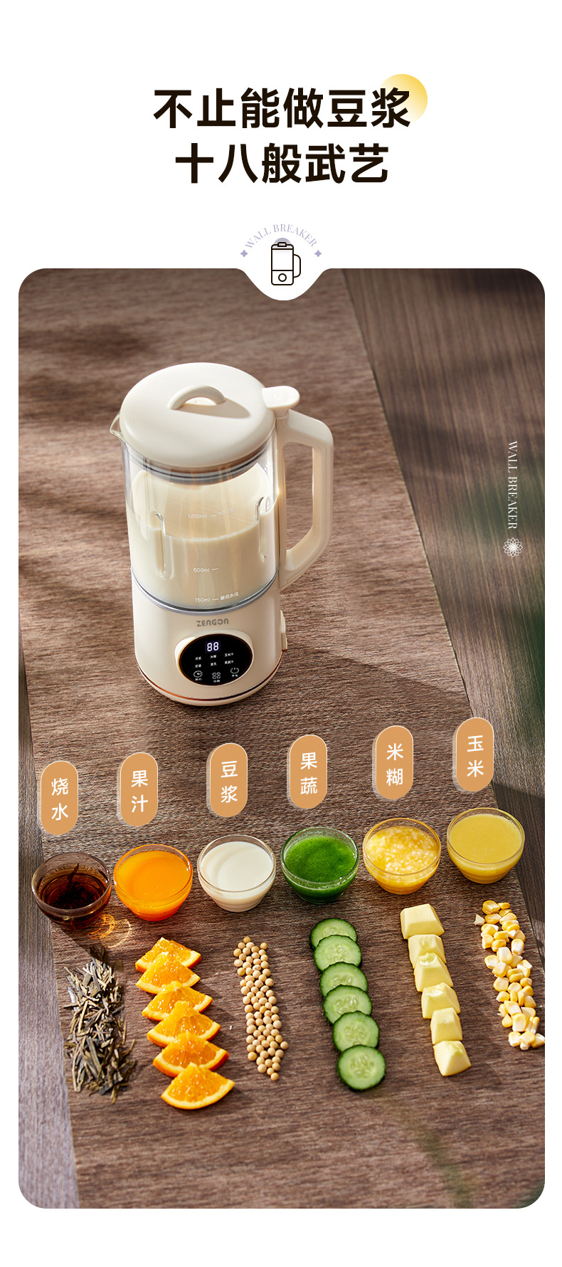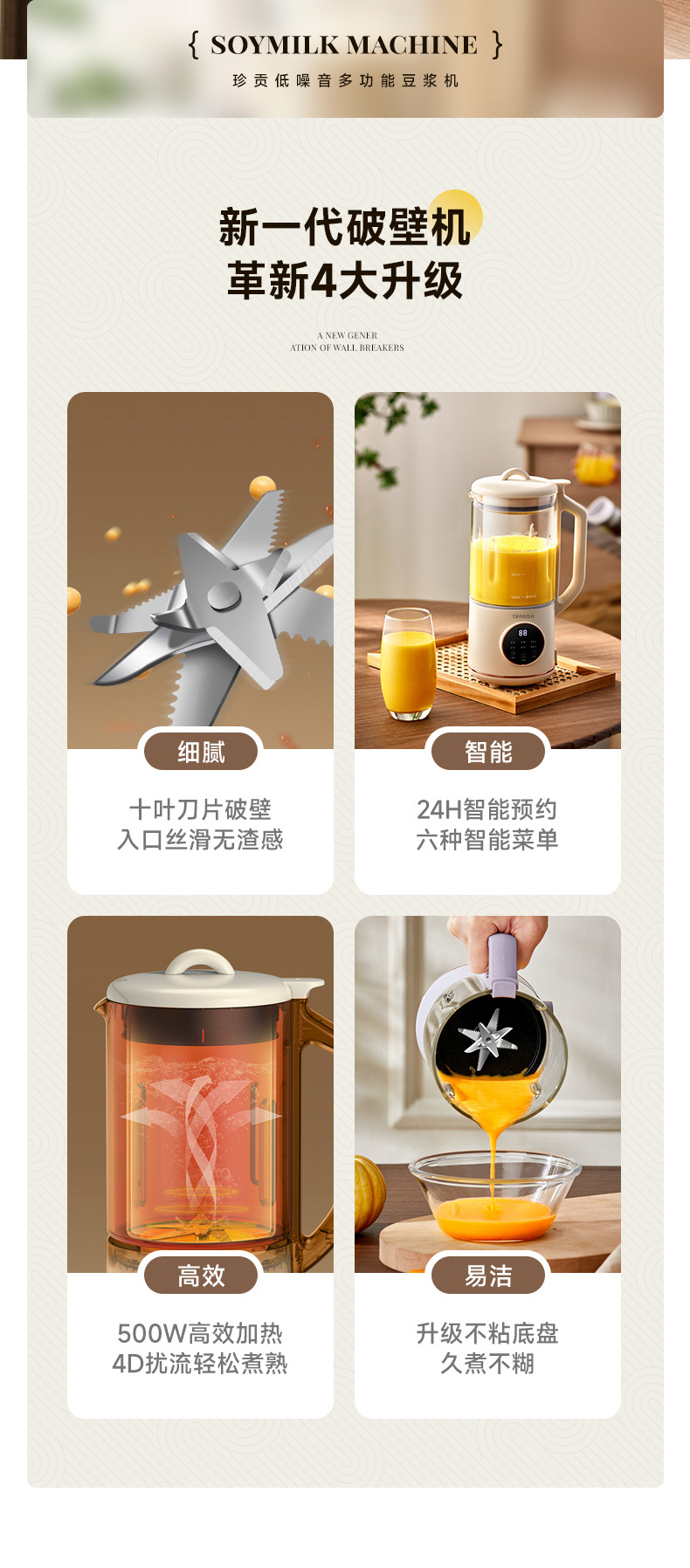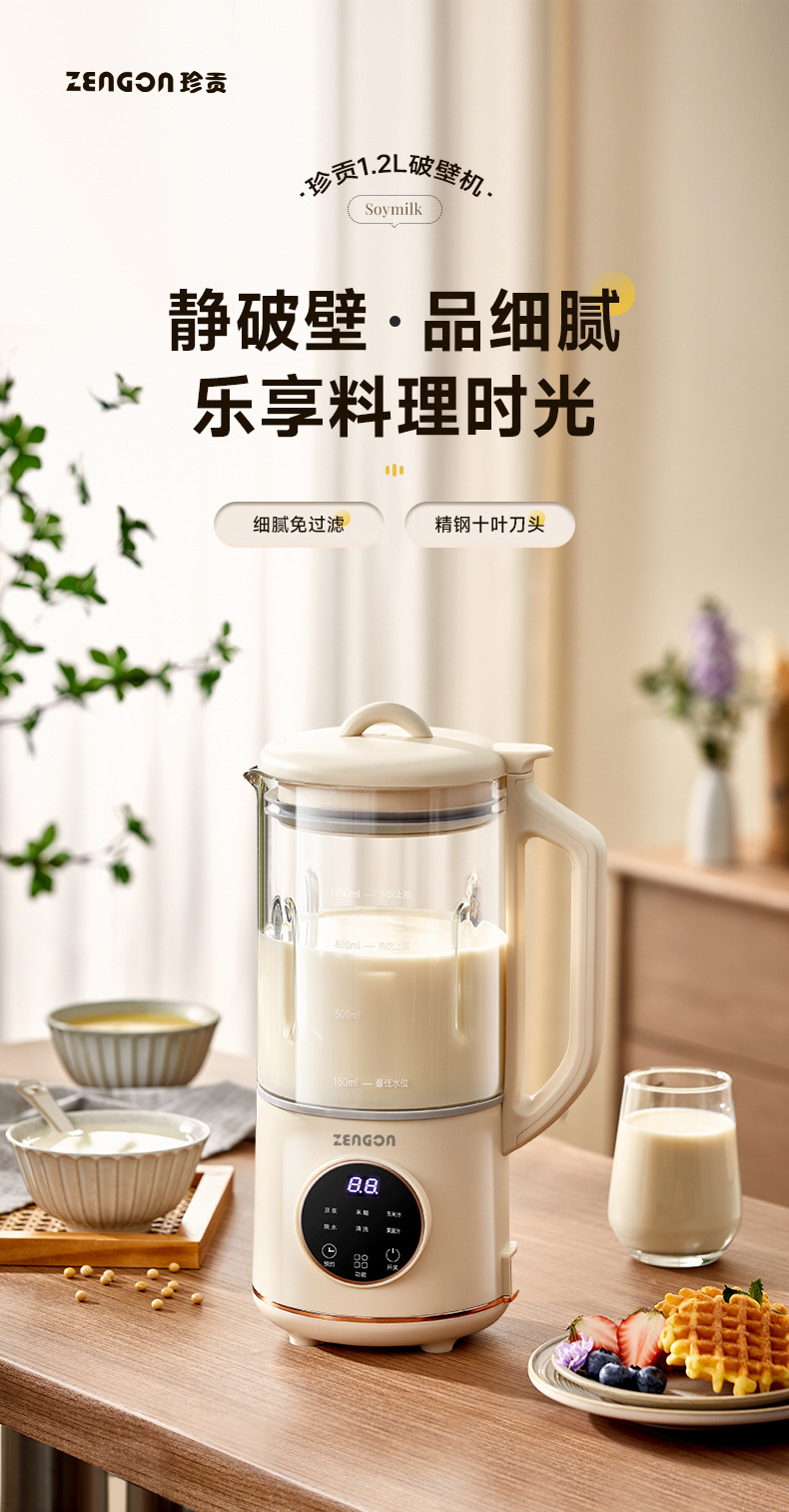 珍贡 豆浆机全自动小型家用多功能辅食料理机榨汁机静音免过滤迷你破壁机1200ml