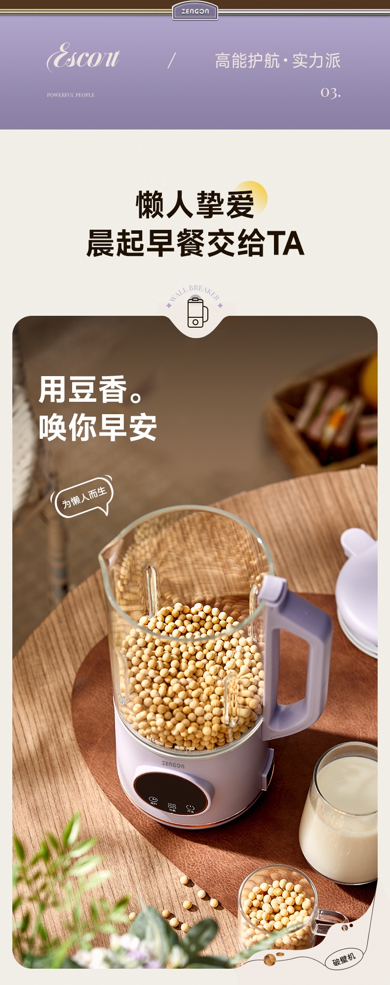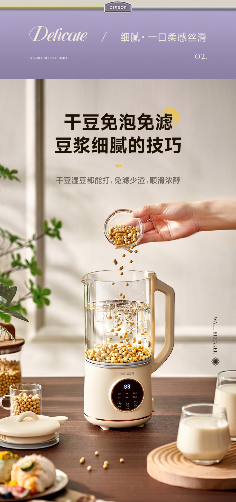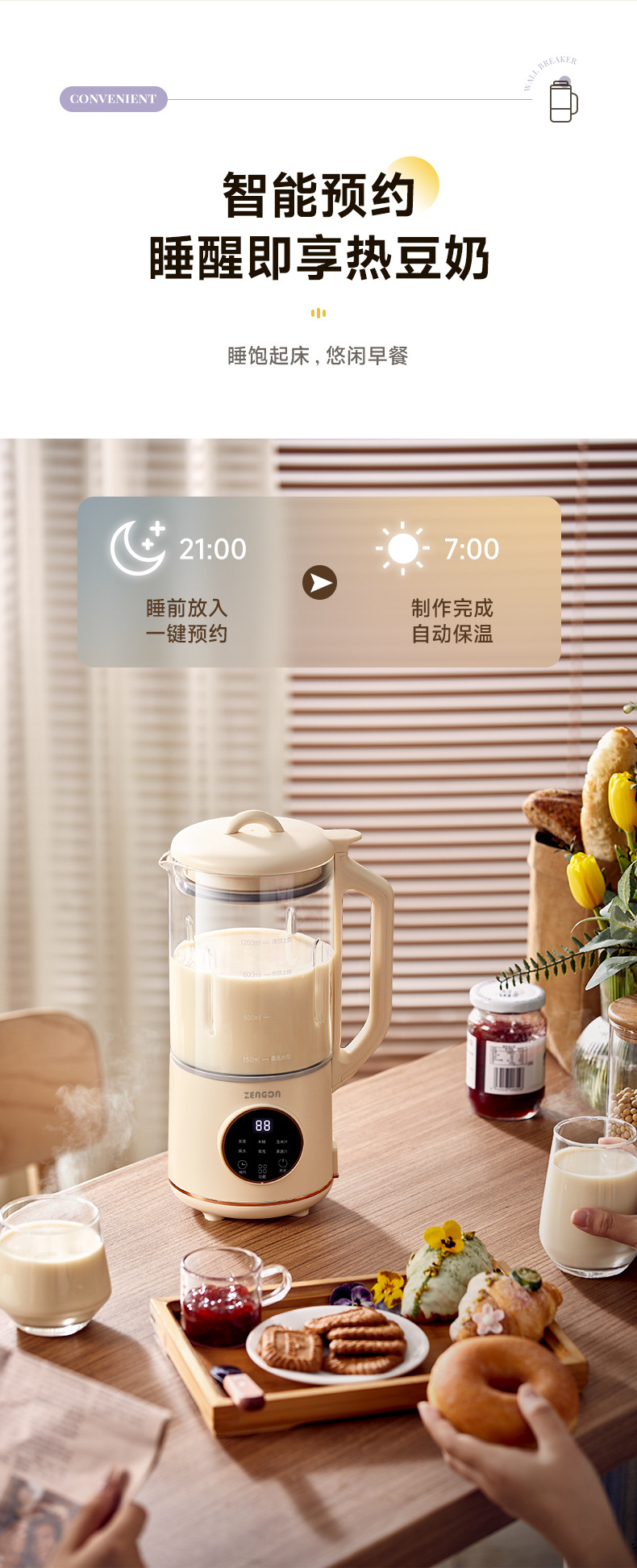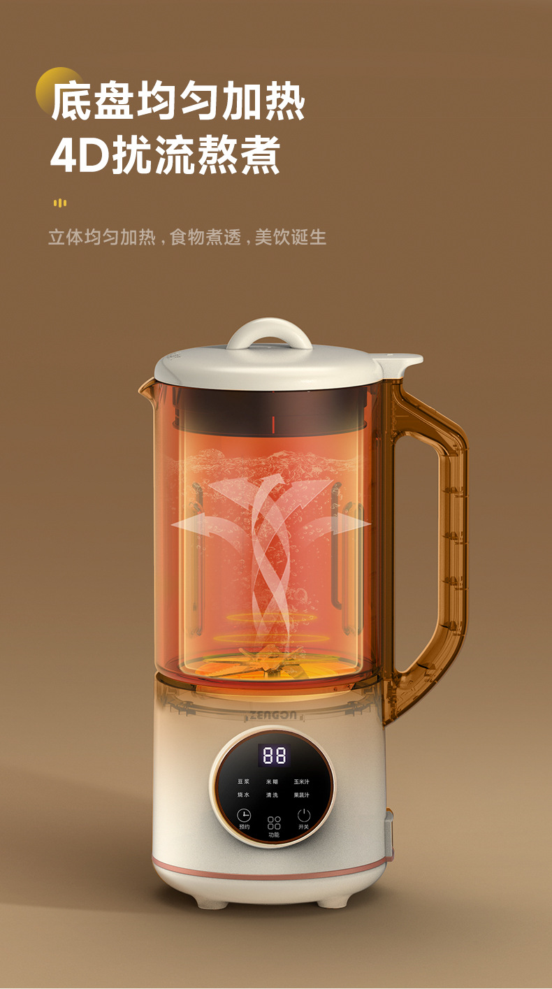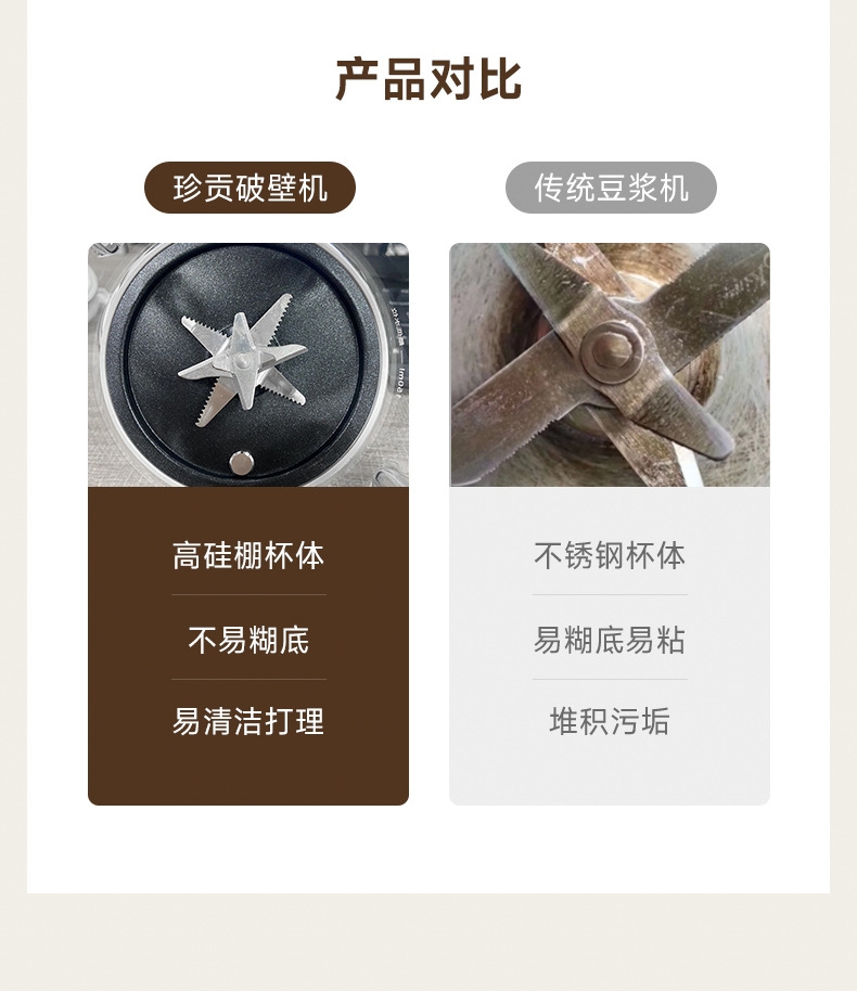 珍贡 豆浆机全自动小型家用多功能辅食料理机榨汁机静音免过滤迷你破壁机1200ml