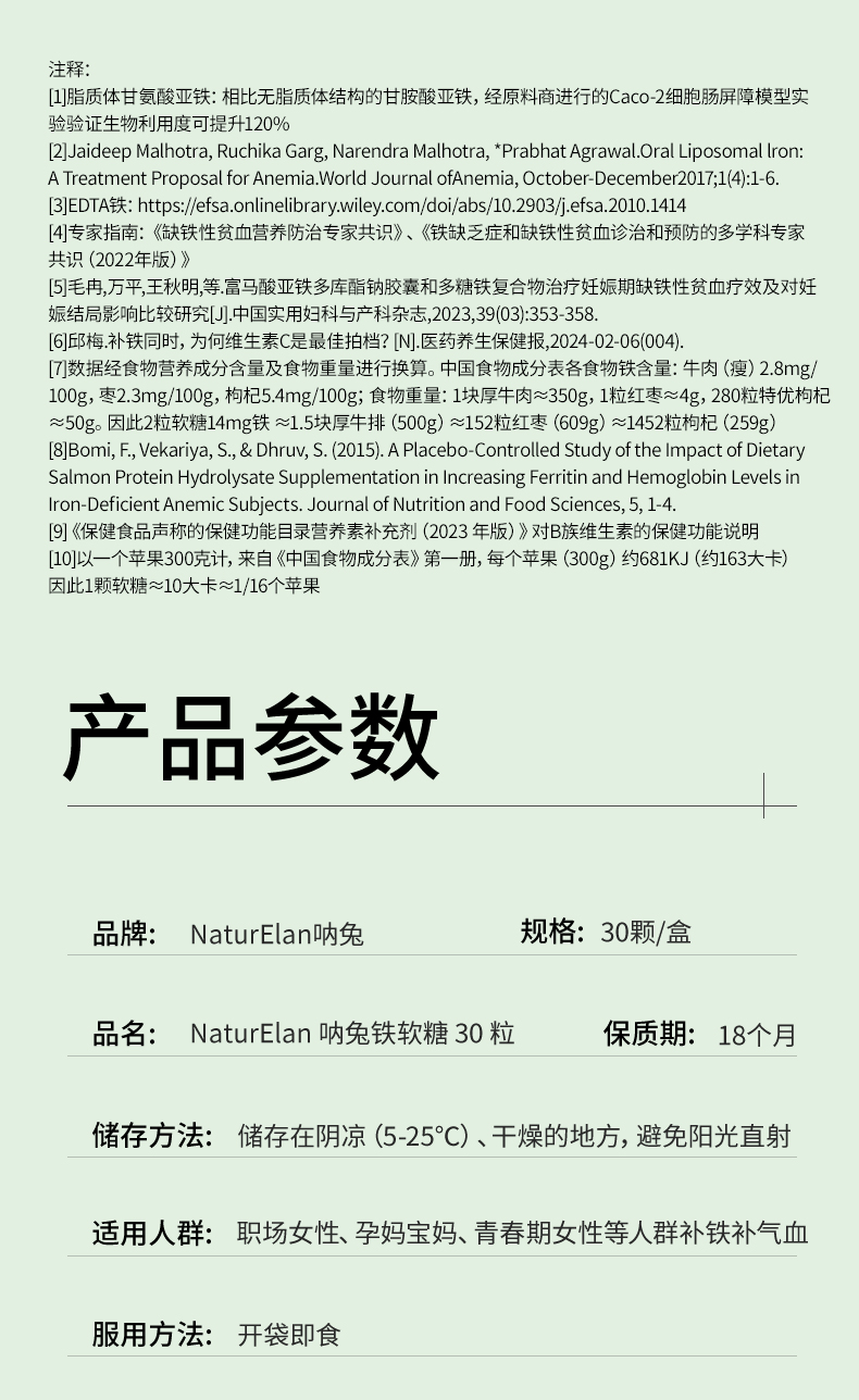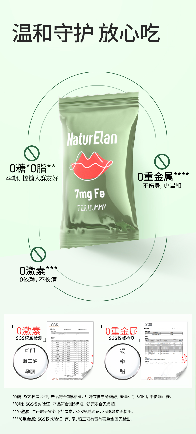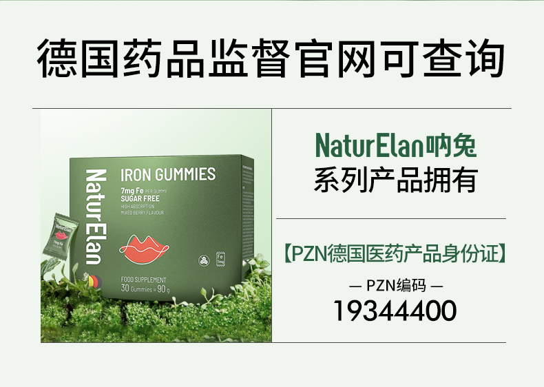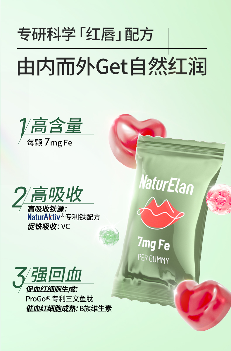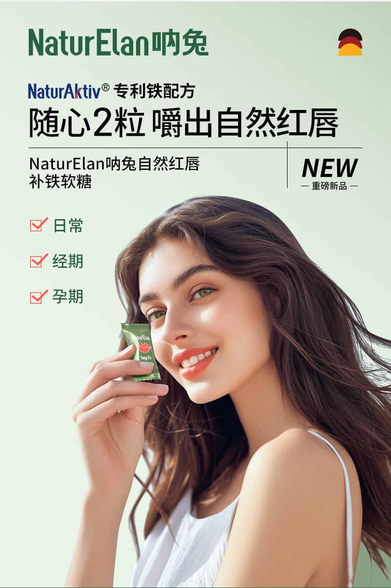 德国进口 NaturElan呐兔 女性自然红唇补铁软糖30粒