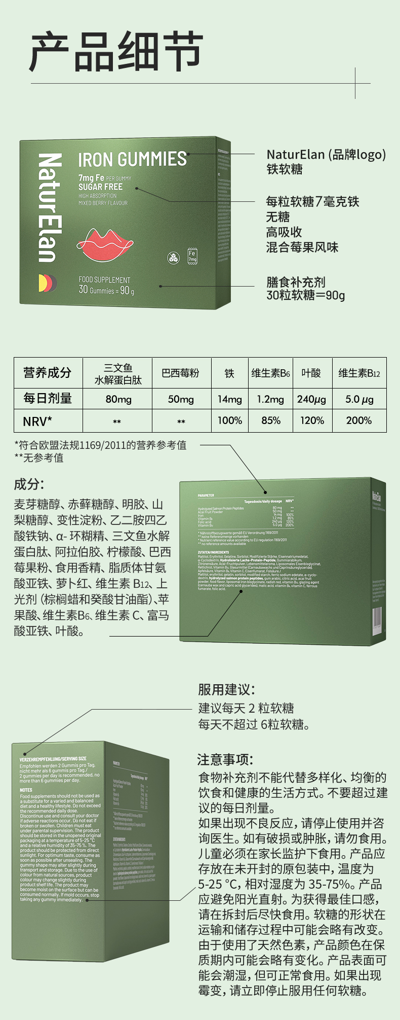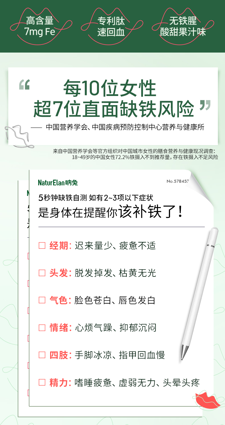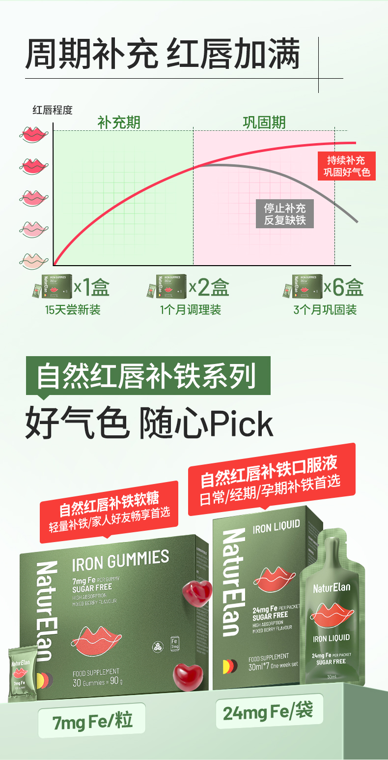 德国进口 NaturElan呐兔 女性自然红唇补铁软糖30粒