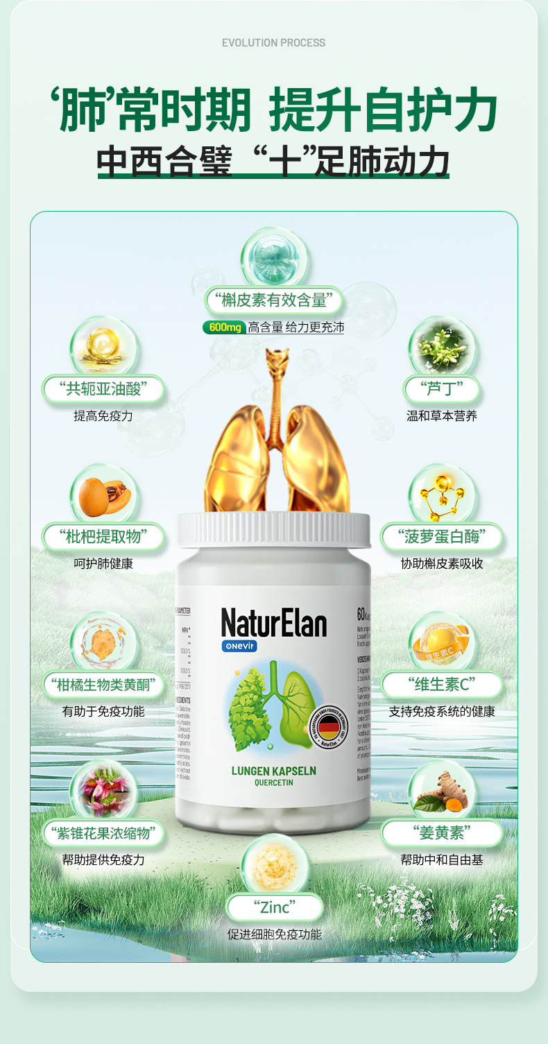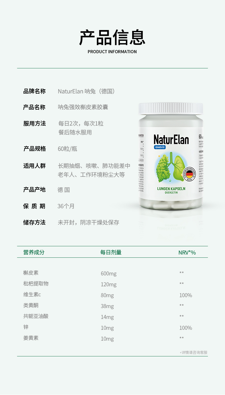 NaturElan呐兔 槲皮素肺动力胶囊 60粒 复合槲皮素 畅快呼吸感