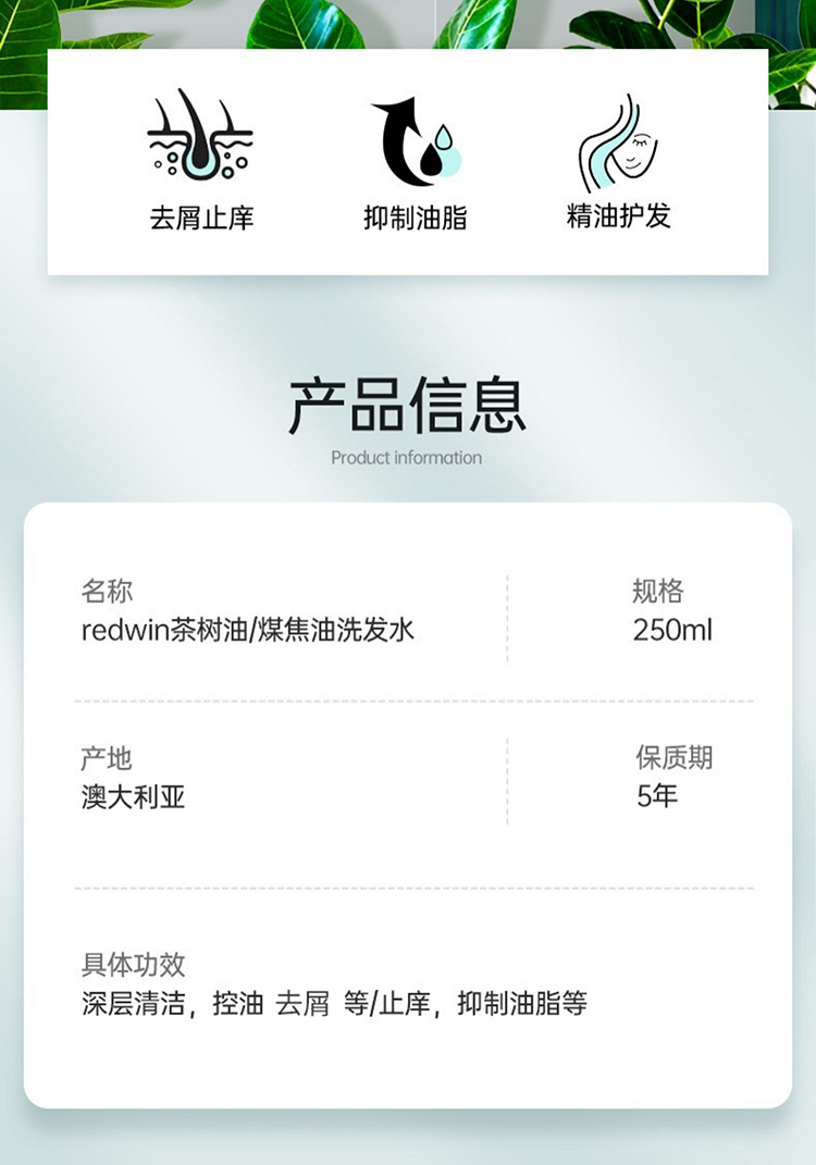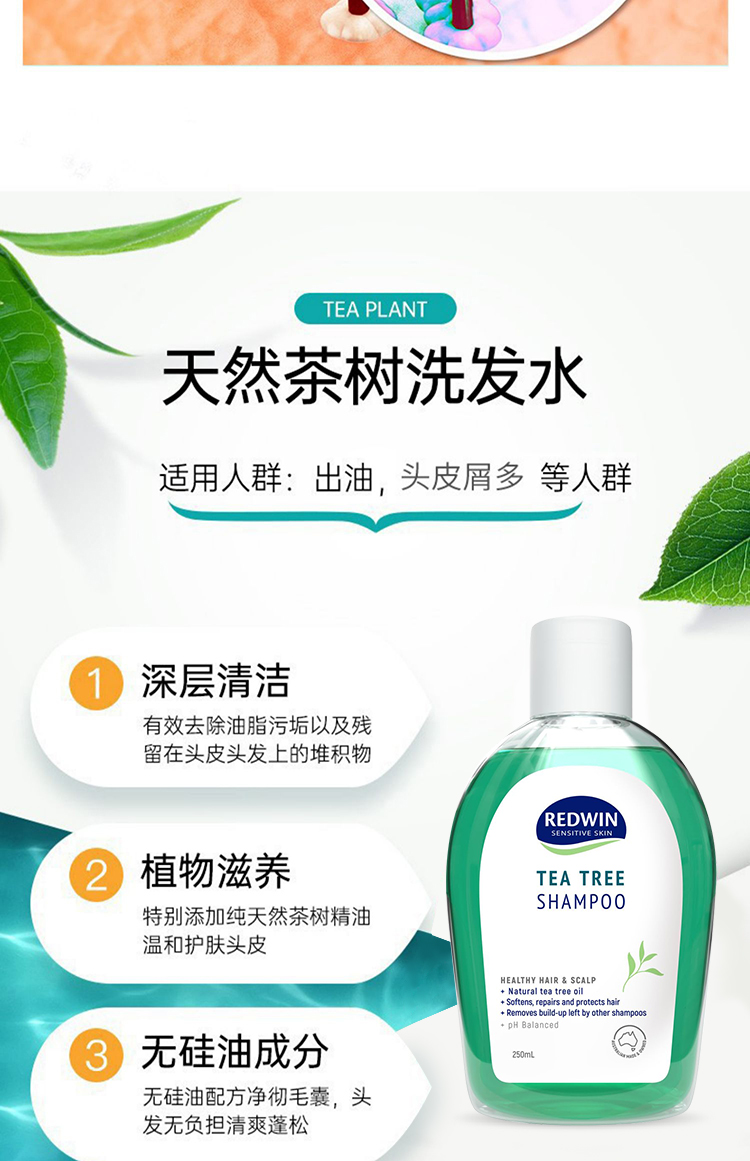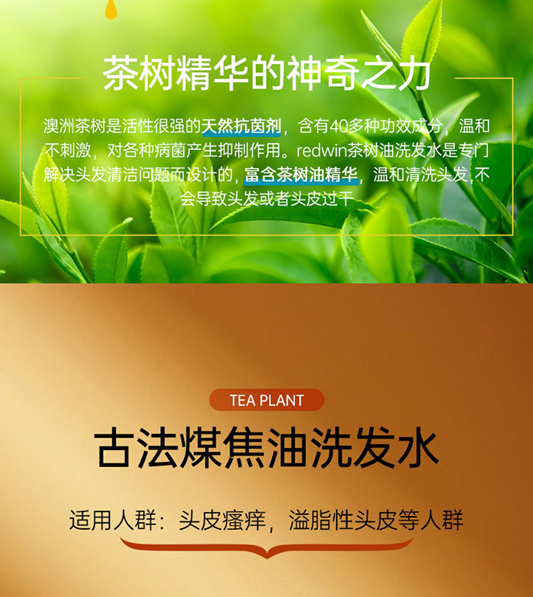 Redwin纯天然茶树油洗发水,不含香精和有害化学物质,专门针对头发清洁问题而设计,彻底清洁头发头皮上堆积已久的其他洗发水或发胶残留物。其深层清洁又不会刺激头发和头皮,能有效彻底杀菌,清洁头皮堵塞的毛孔,从而可以预防和辅助治疗脂溢性脱发。