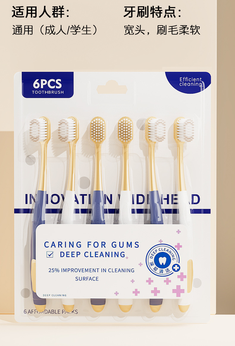 山姆同款儿童牙刷 蜜丝6支装宽头细软成人牙刷大头软毛牙刷批发口腔清洁婴幼