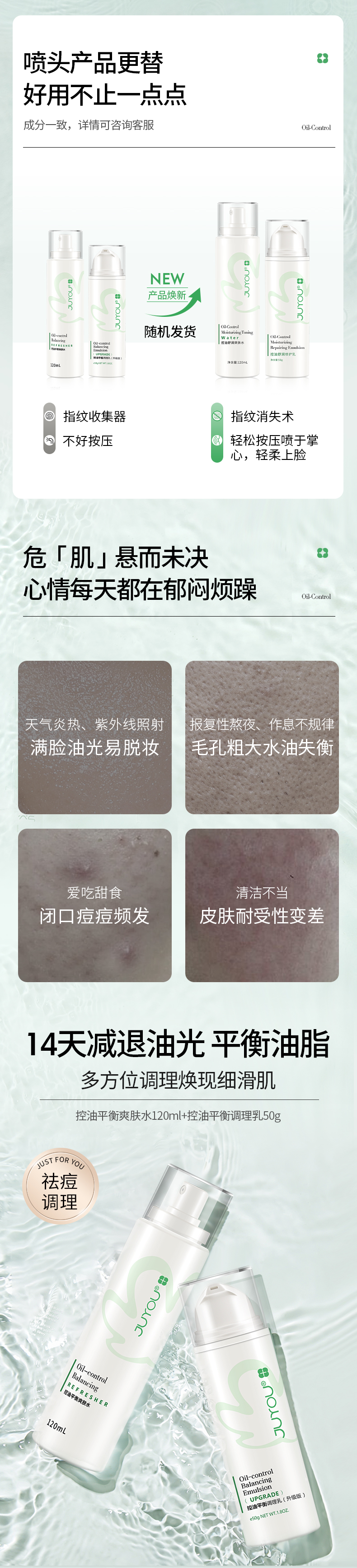 【裸瓶】谷雨白千松露细致清颜平衡水乳套装水120ml+乳100ml细致毛孔清颜抑菌