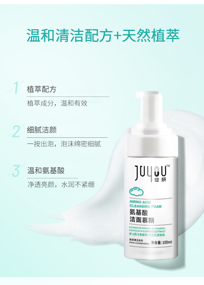 谷雨 氨基酸刷头洗面奶补水保湿控油深层清洁毛孔温和舒缓洁面泡沫