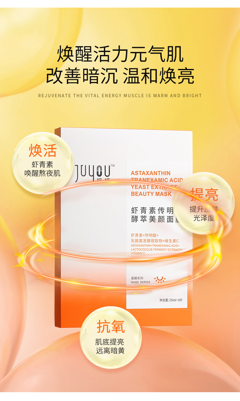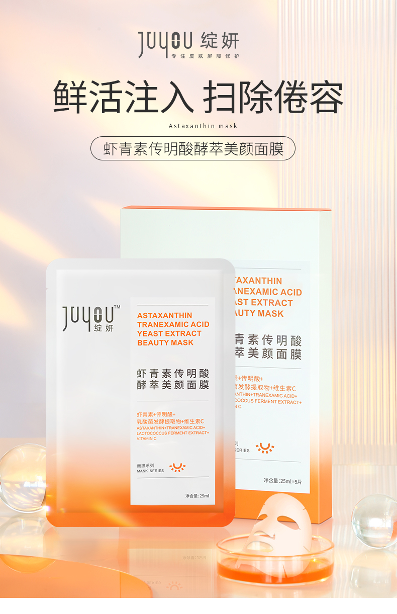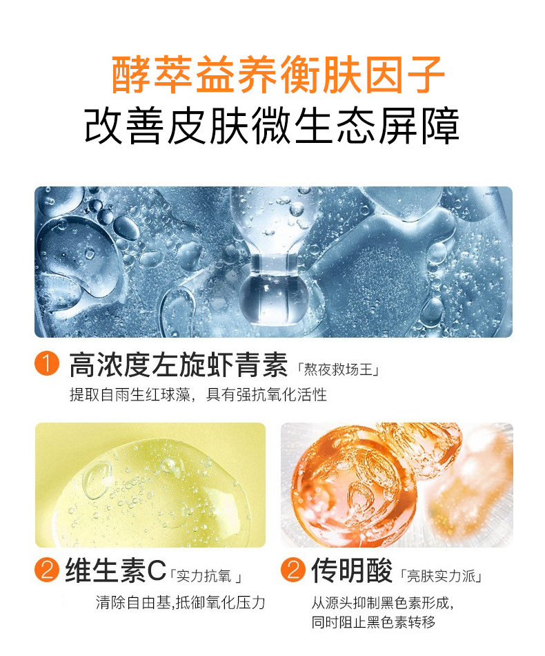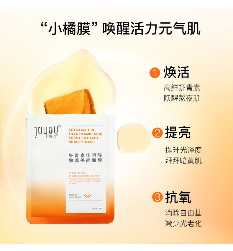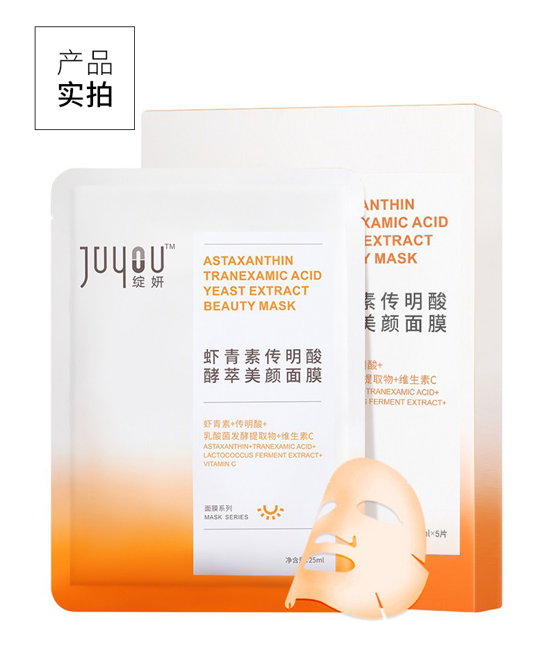 绽妍虾青素传明酸酵萃美颜面膜5片 灯泡膜美白抗氧化保湿提亮肤色橘膜