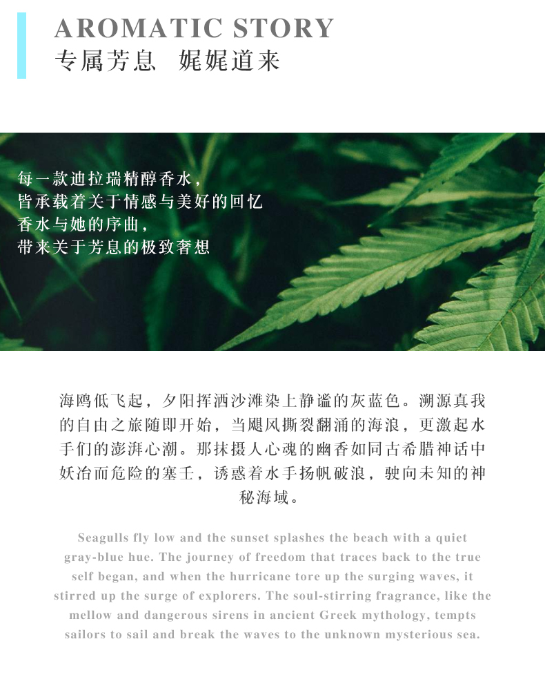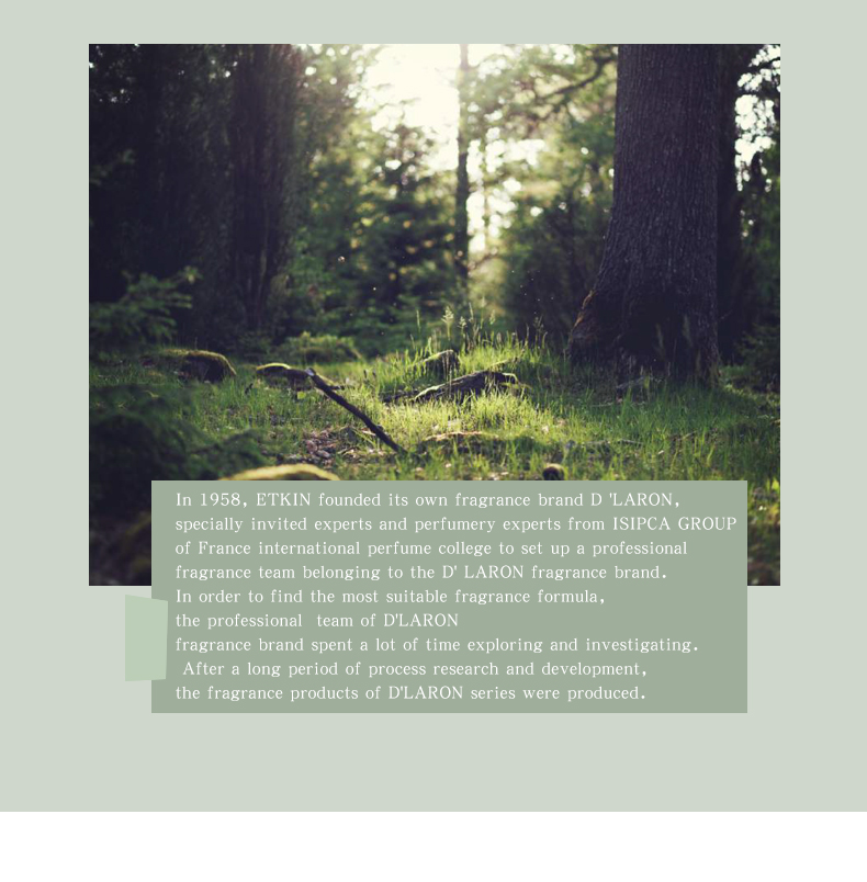 D'LARON为带香者起舞,为持香者作歌,为绕香者吟唱,独特,珍贵,自然。萦绕着D'LARON香芬,简单而纯粹,为自己的自然坚持,为自己的独特渴望,最自然的香,最初的自己。