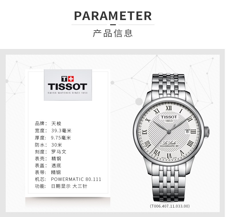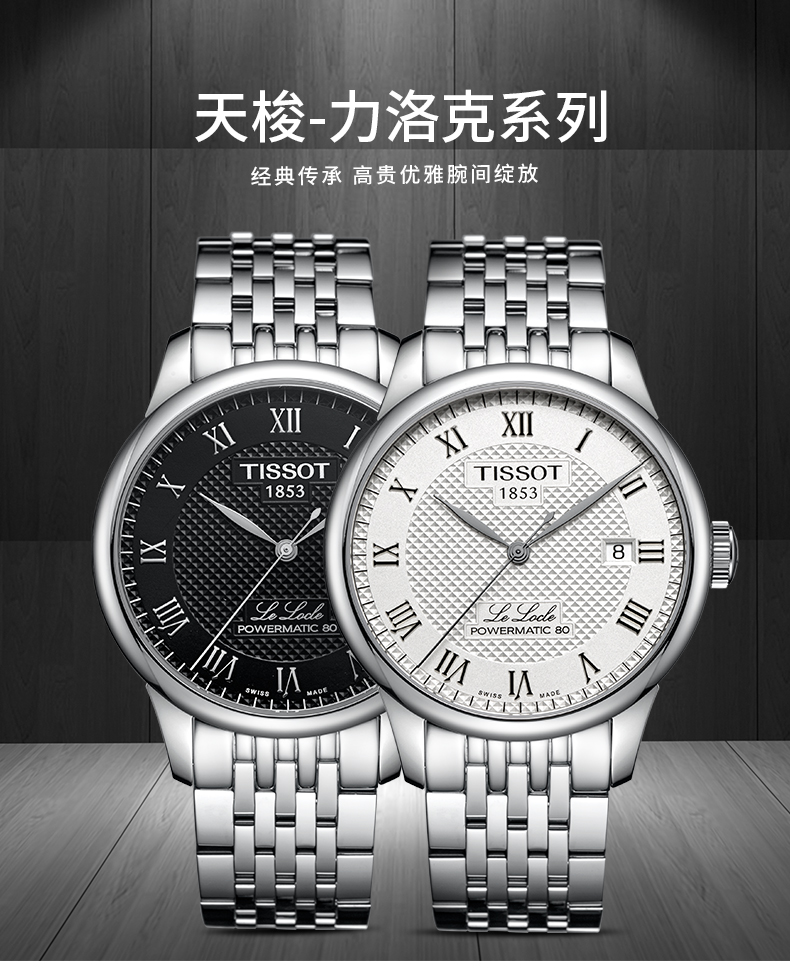 天梭表1853年诞生于手表制造业的摇篮瑞士。天梭融合了160年的创意和传统的瑞士制表工艺,是瑞士制表业中的佼佼者。它的目标是向大众提供金质银价的手表。作为自行车,摩托车,击剑和冰上曲棍球世界锦标赛的指定计时器,天梭强调寻求成绩,精确度和挑战自我极限的体育价值。
