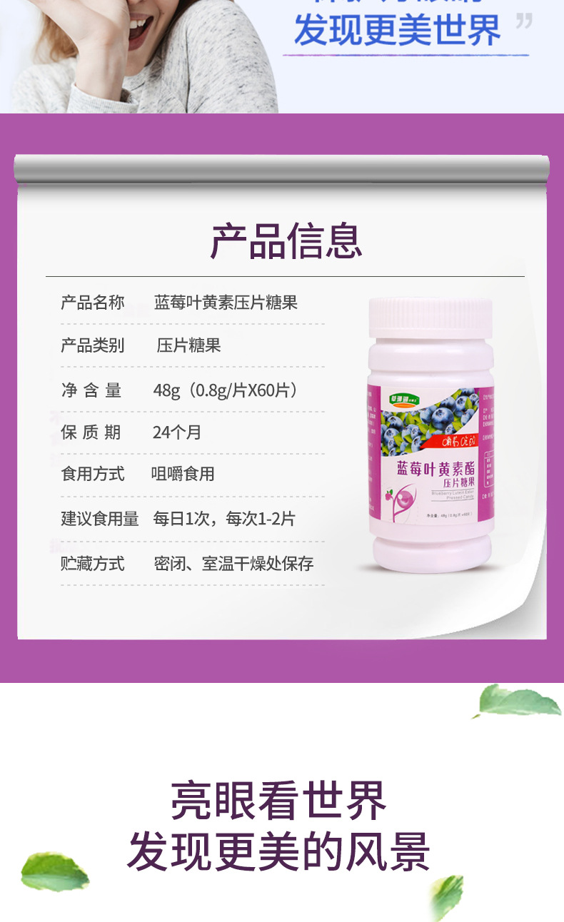 南京同仁堂绿金家园黑加仑蓝莓叶黄素酯片压片糖果成人叶黄素开盖即食70g/盒