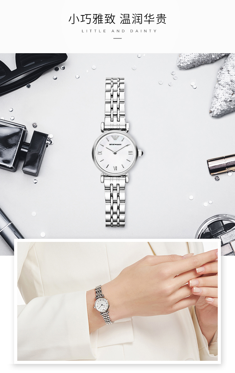 【机芯质保2年】Armani阿玛尼玫瑰小圆盘手表女 轻奢气质月相贝母盘石英女士腕表AR11461