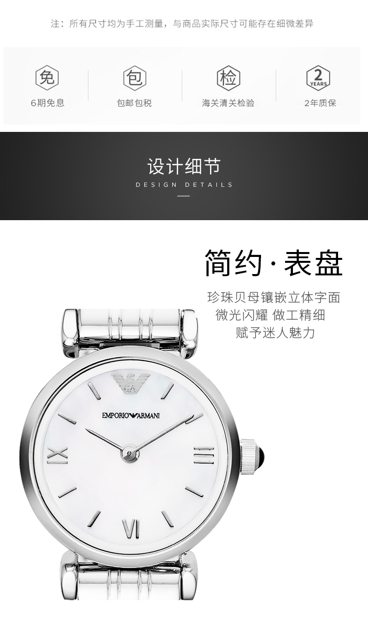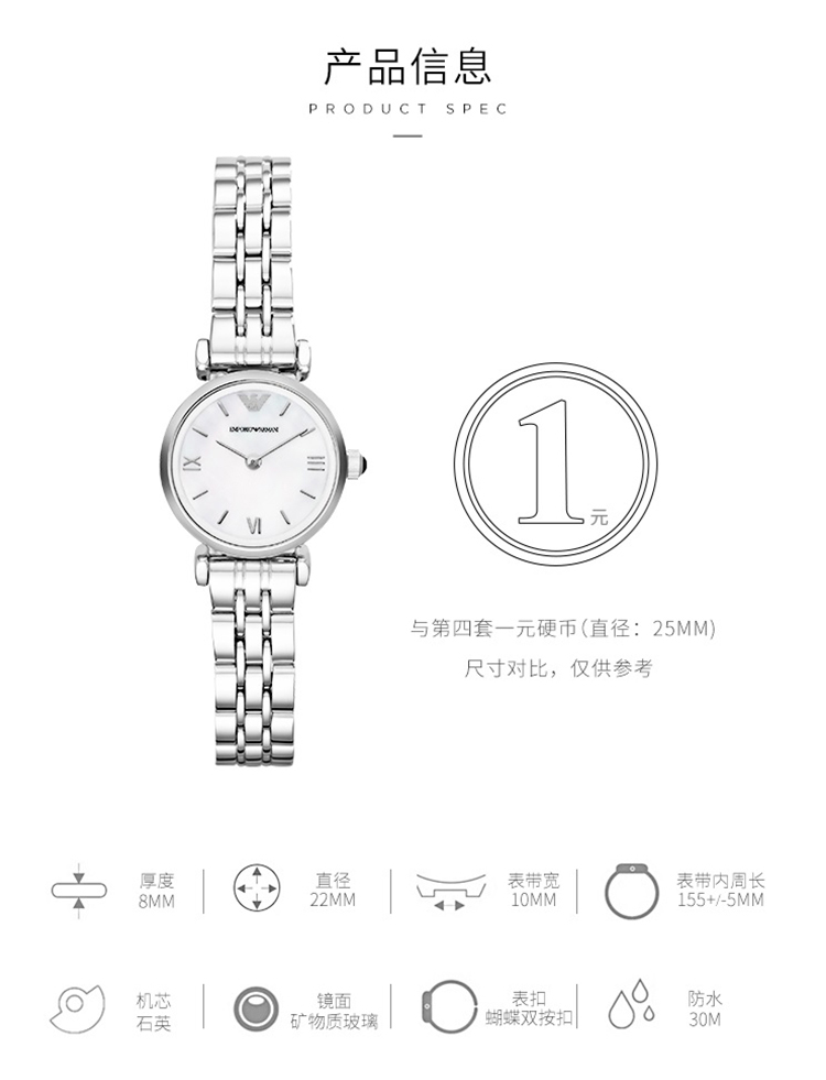 【全国联保 顺丰包邮】EMPORIO ARMANI阿玛尼手表 简约时尚石英女表AR11355
