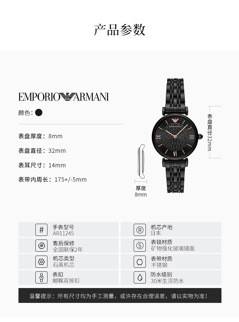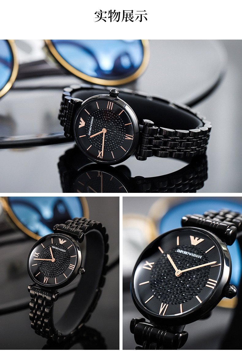 Armani阿玛尼手表女黑色满天星时尚钢带佟丽娅同款女表AR11245
