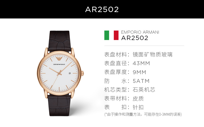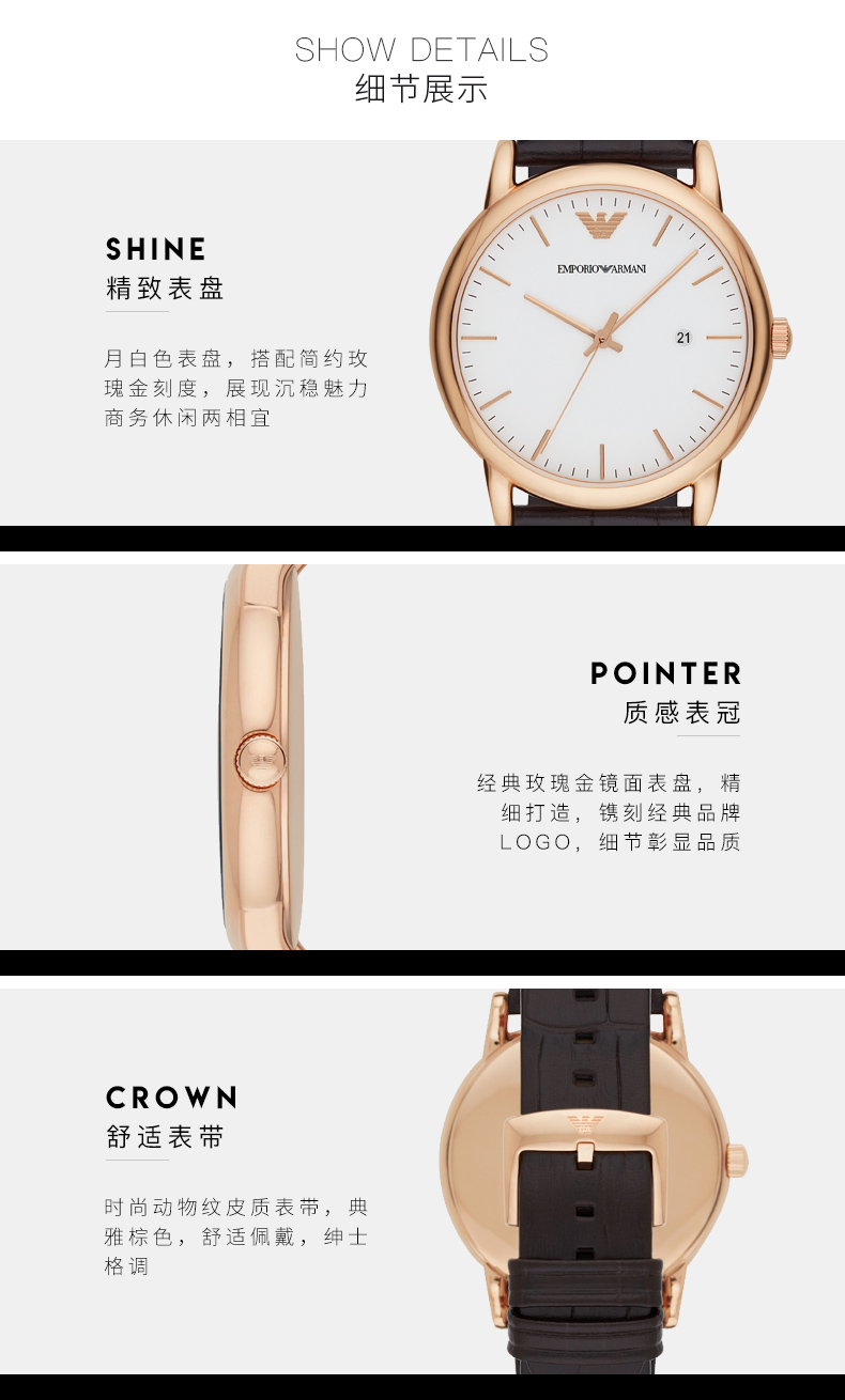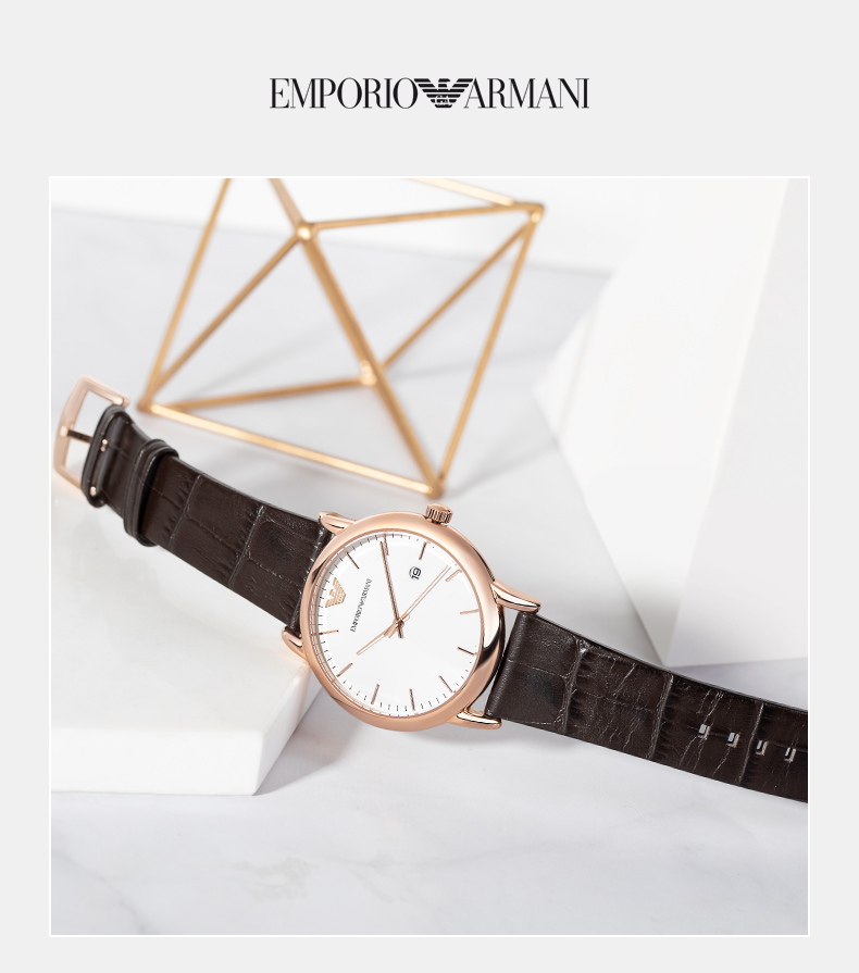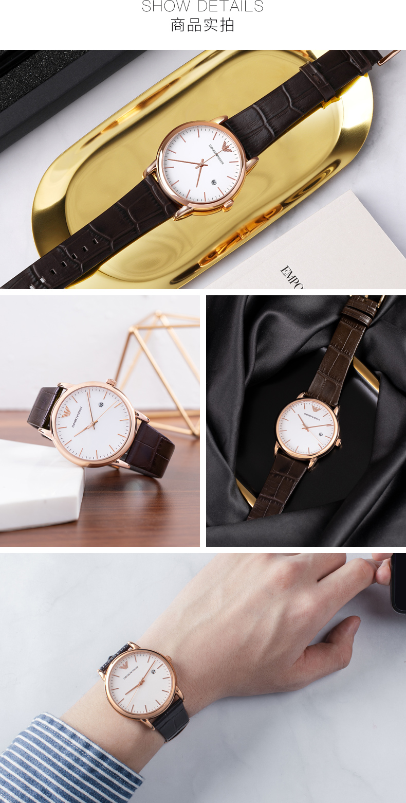 【全国联保 顺丰发货】 Armani阿玛尼薄款皮革带手表 经典简约石英男士手表AR2502