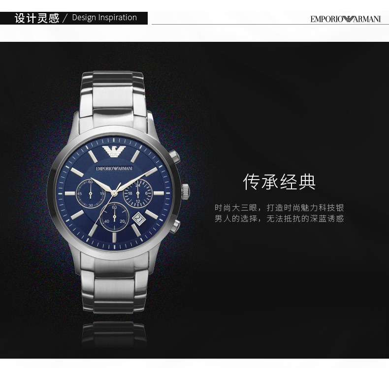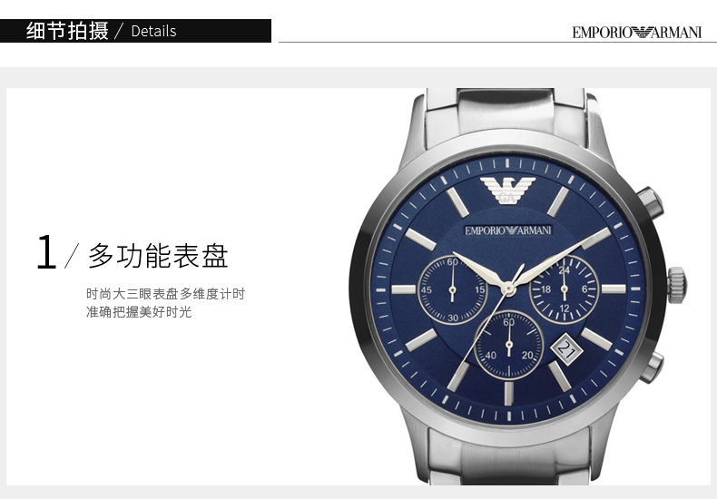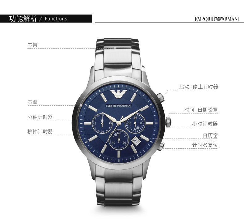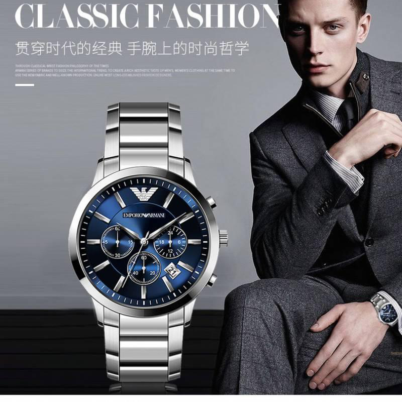 【全国联保 顺丰发货】Armani阿玛尼正品男士手表蓝色表盘 简约钢带商务石英表男AR1648