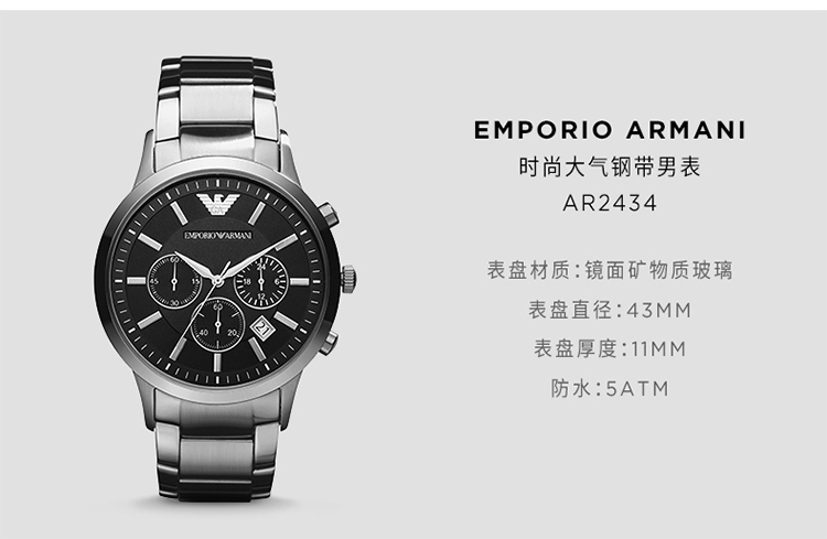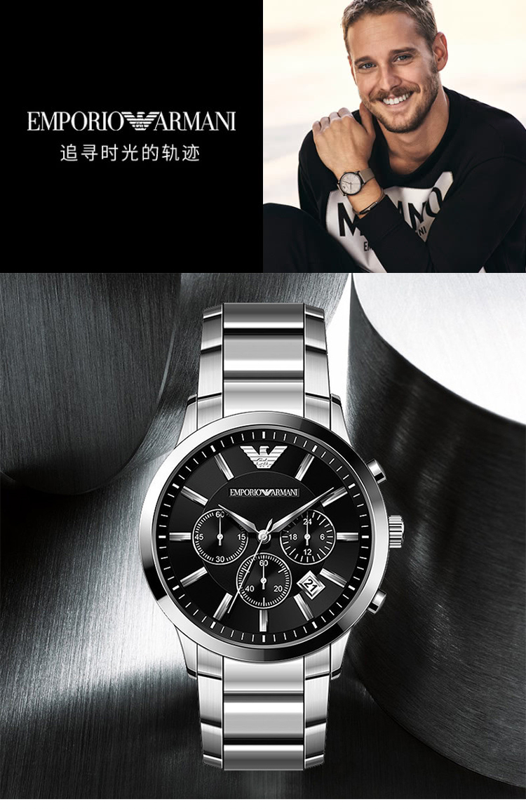 Armani阿玛尼手表男士正品腕表钢带商务多功能防水石英男表AR2434