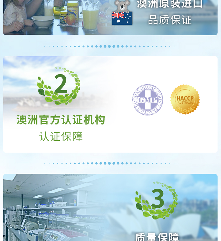 澳乐乳品牌一直秉承Spring into Health 的承诺,“天然纯净”的营养配方,将健康融入成长,使全球宝宝和妈妈生活的更无忧,更幸福。 产品包括DHA植物藻油,海藻钙、蘑菇VD粉、益生菌、乳铁蛋白、(钙、铁、锌)全营养撒剂,澳洲进口营养配方