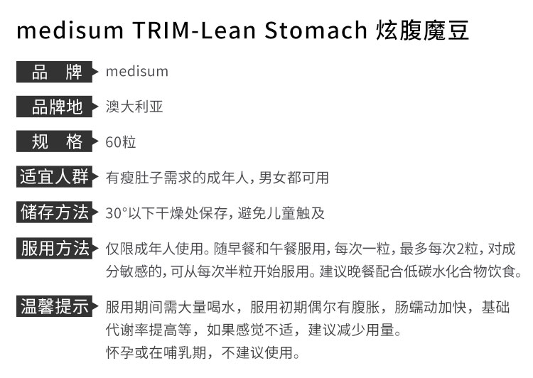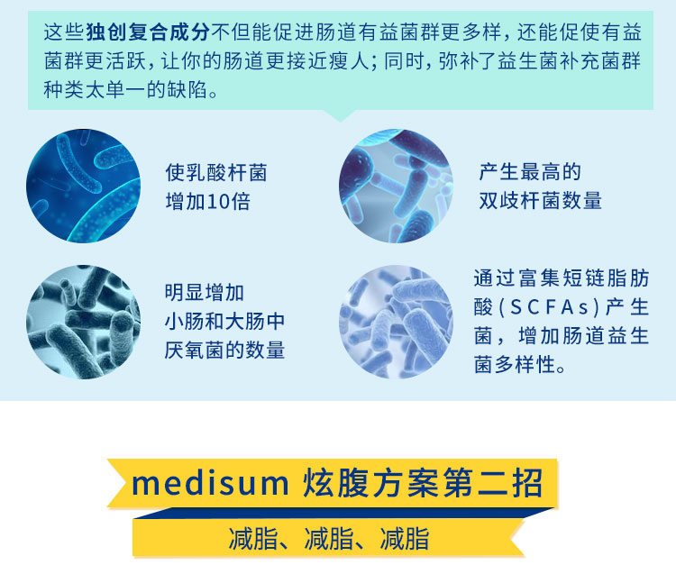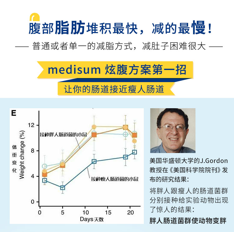 【核心卖点】 好处一:增加肠道菌群多样性,让你肠道接近不易胖的人 胖人和不胖的人的区别,主要是肠道菌群的多样性不足,Shantha博士结合J.Gordon研究成果,模拟澳洲“粪菌移植”,研发复合成分,增加肠道菌群多样性,3个月接近接近不易胖人肠道 第二招:植物成分三重产热,吊打肉肉 三重产热功能叠加,每天多消耗600大卡 第三招:外用器材,局部塑形更紧致 外用器材,加速局部循环,带走多余热量,局部更紧致 服用期间每周测量体重腰围,联系客服调整用法