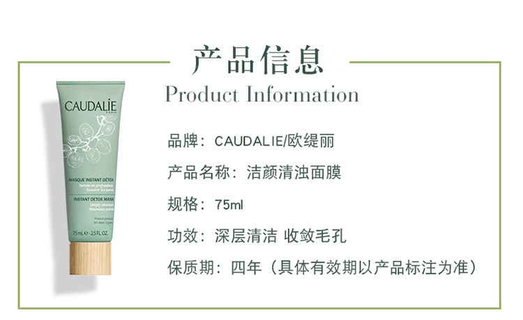 法国 Caudalie欧缇丽 Caudalie欧缇丽洁颜清浊面膜 75m