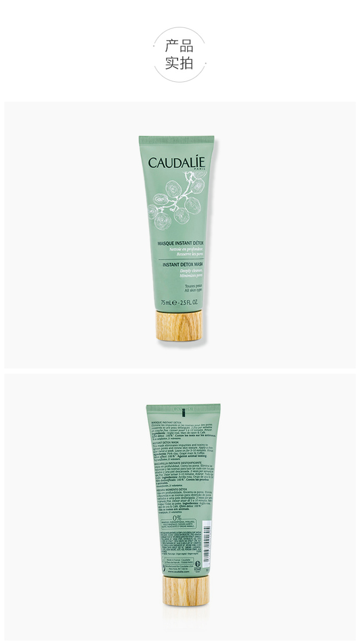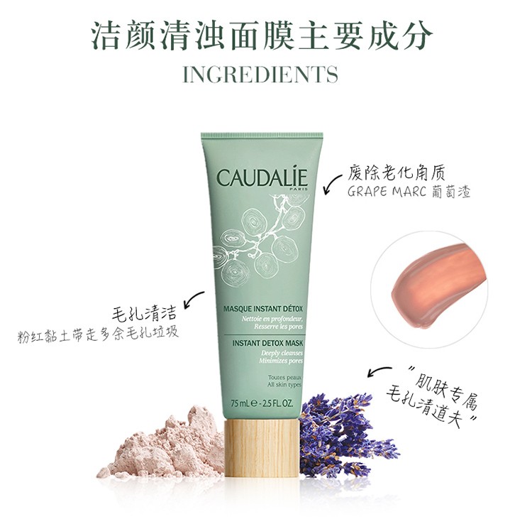 香港直邮 法国 Caudalie欧缇丽 Caudalie欧缇丽洁颜清浊面膜 75m