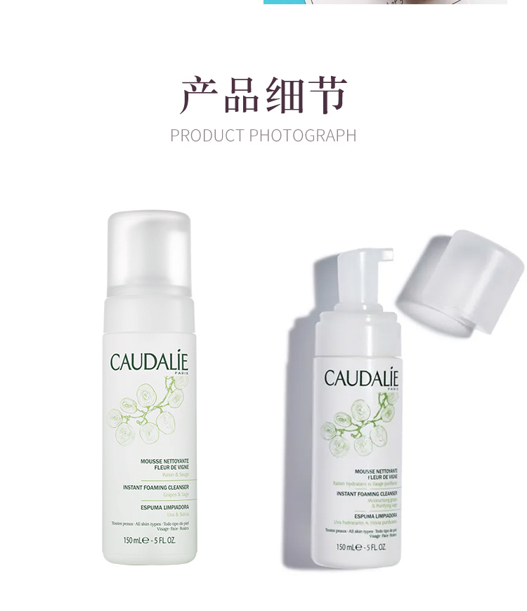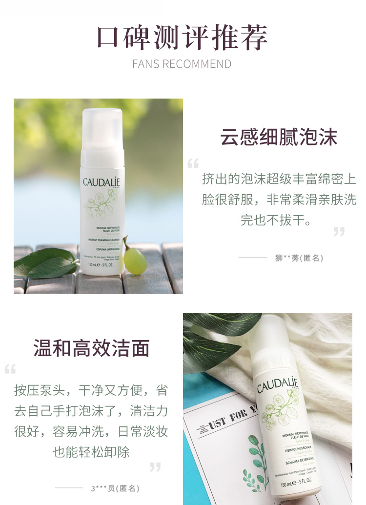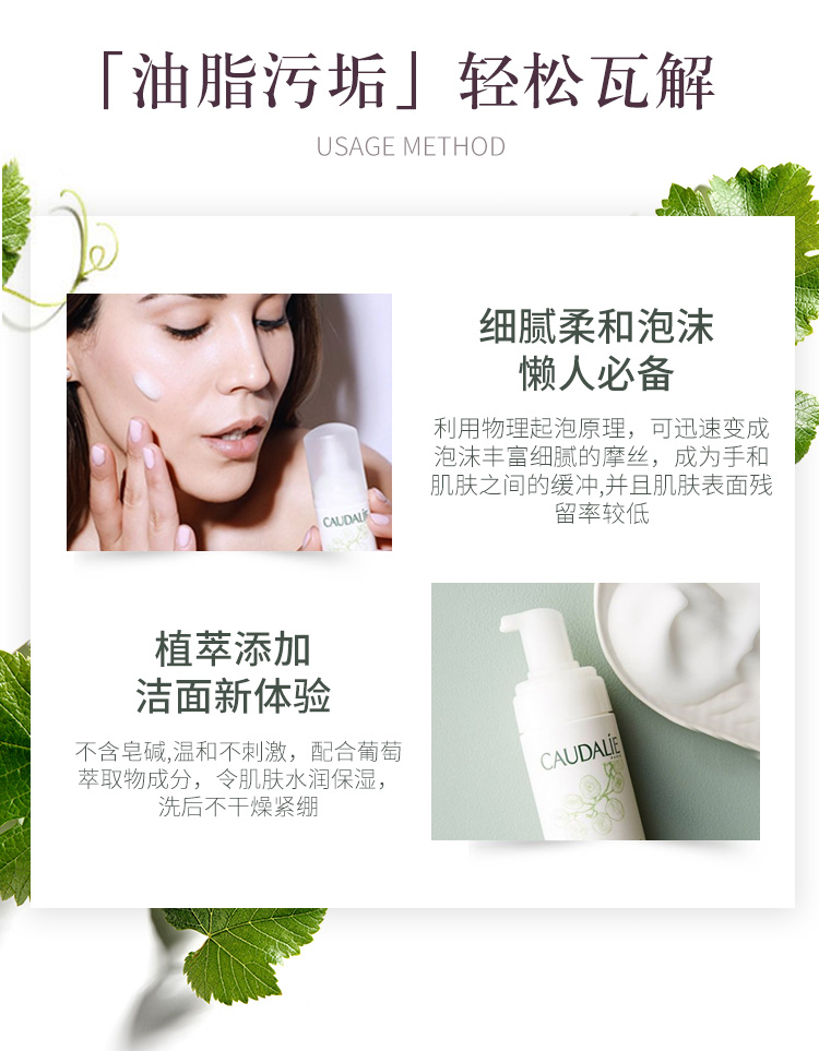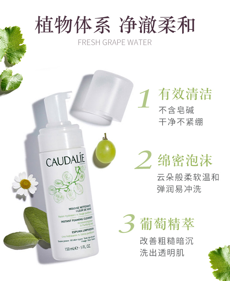 欧缇丽caudalie葡萄温和洁面摩丝舒缓洗面奶150ml清洁保湿