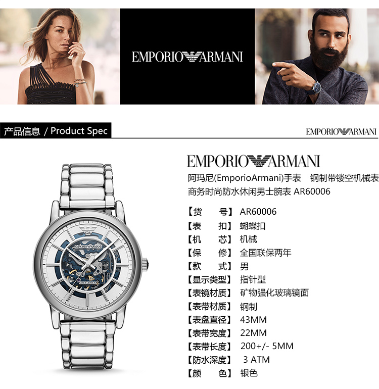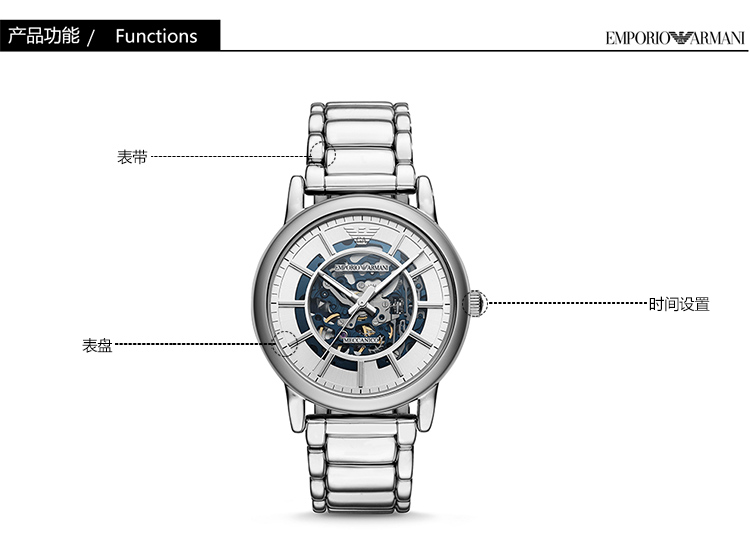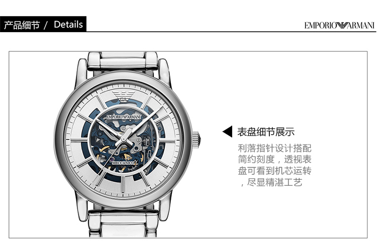 阿玛尼EMPORIO ARMANI Armani阿玛尼手表男时尚大气商务简约正品镂空机械腕表AR60003