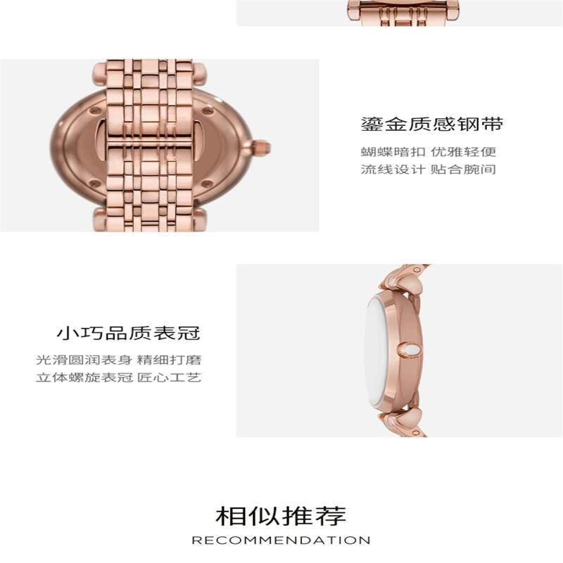 【机芯质保2年】Armani阿玛尼玫瑰小圆盘手表女 轻奢气质月相贝母盘石英女士腕表AR11461