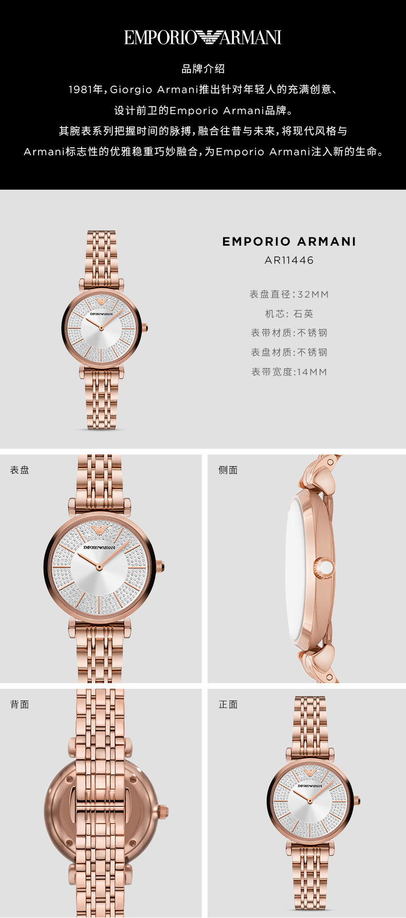 【全国联保 顺丰包邮】EMPORIO ARMANI阿玛尼手表 简约时尚石英女表 AR11204