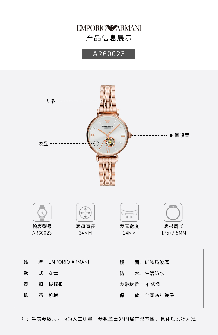 阿玛尼EMPORIO ARMANI Armani阿玛尼手表男时尚大气商务简约正品镂空机械腕表AR60003