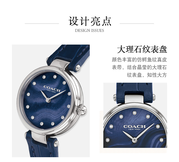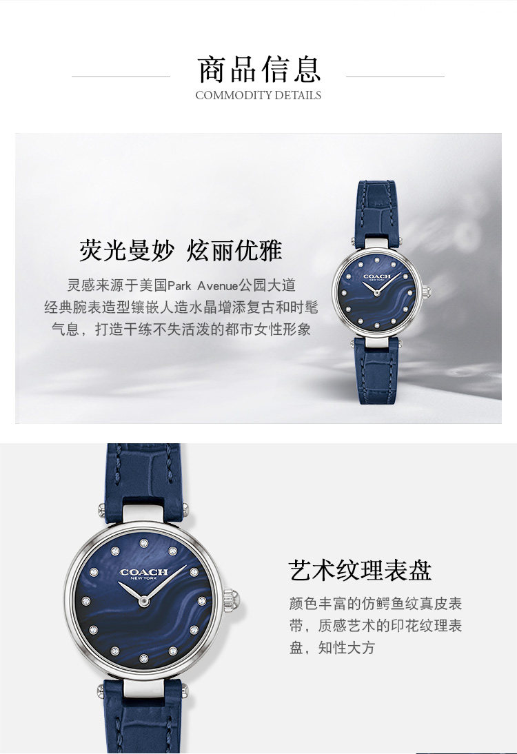 蔻驰 ,1941年诞生。总部位于纽约。COACH是美国高端生活方式时尚品牌,为男士、女士提供精致配饰与礼品,产品系列包括女士手袋、男士包款、男士及女士小皮具、鞋履、服饰、手表、旅行用品、围巾、太阳眼镜、香水、时尚首饰等。
