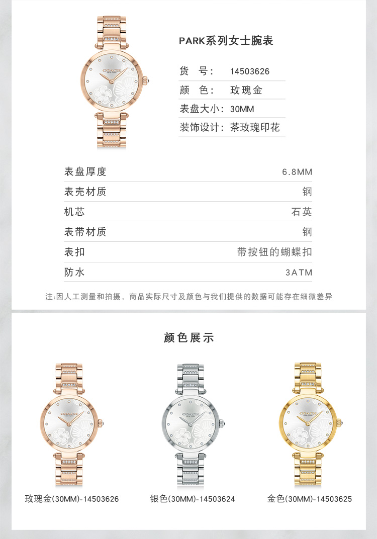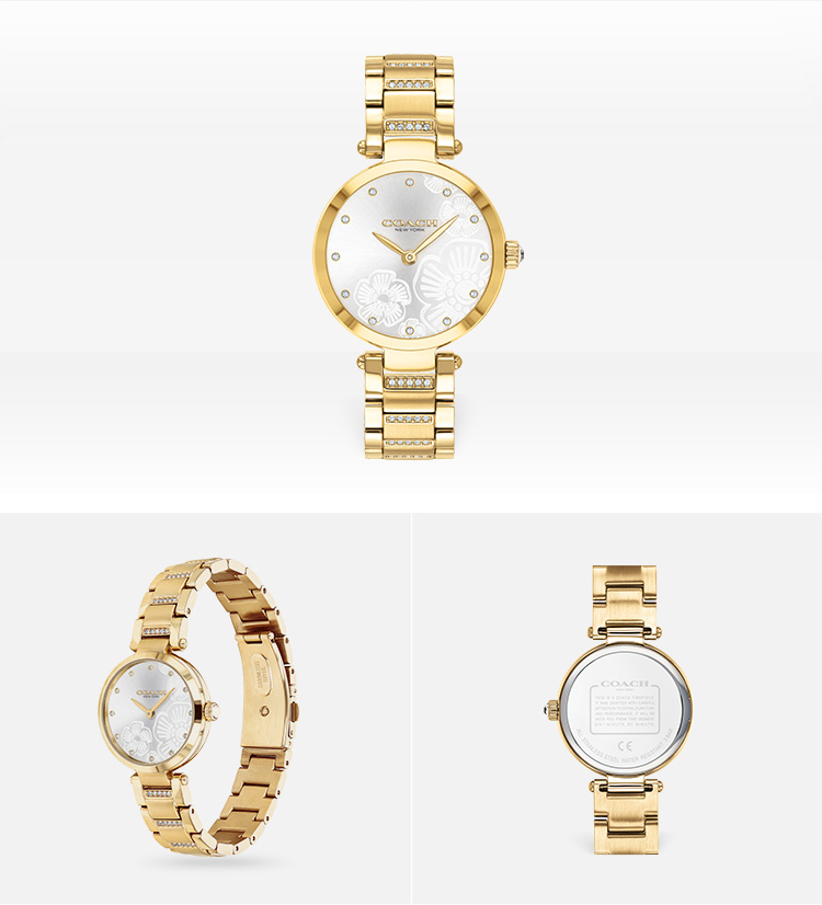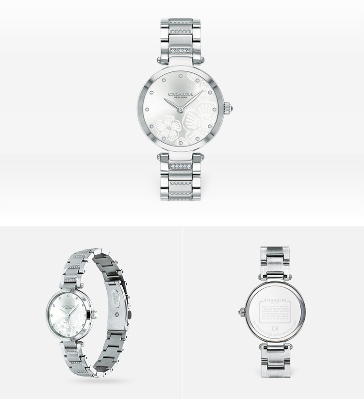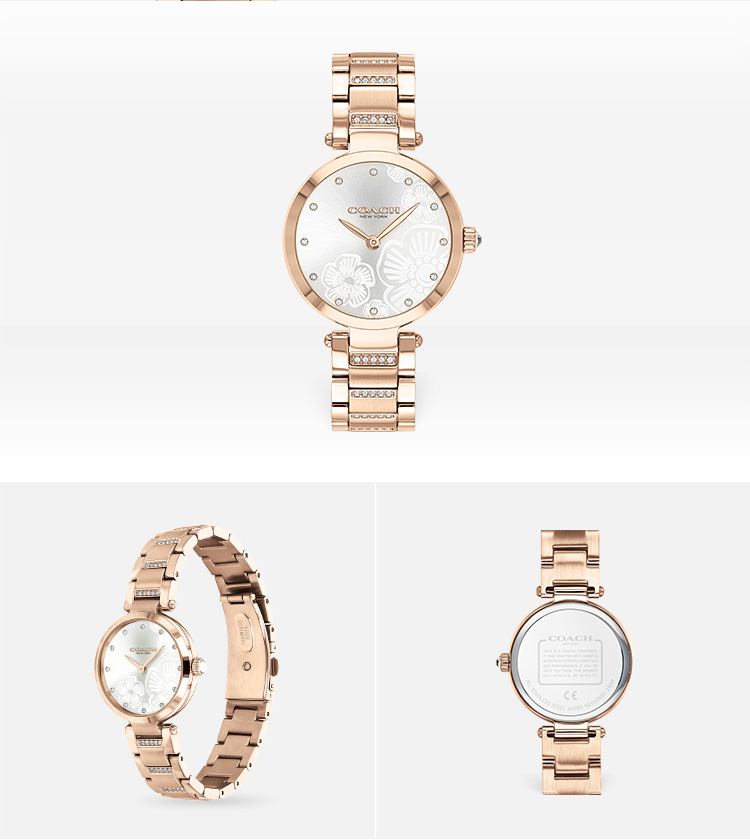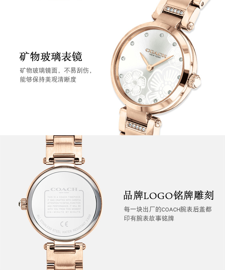 COACH/蔻驰PARK系列 茶玫瑰印花表盘女士腕表 优雅质感日晖纹表盘钢带女石英手表