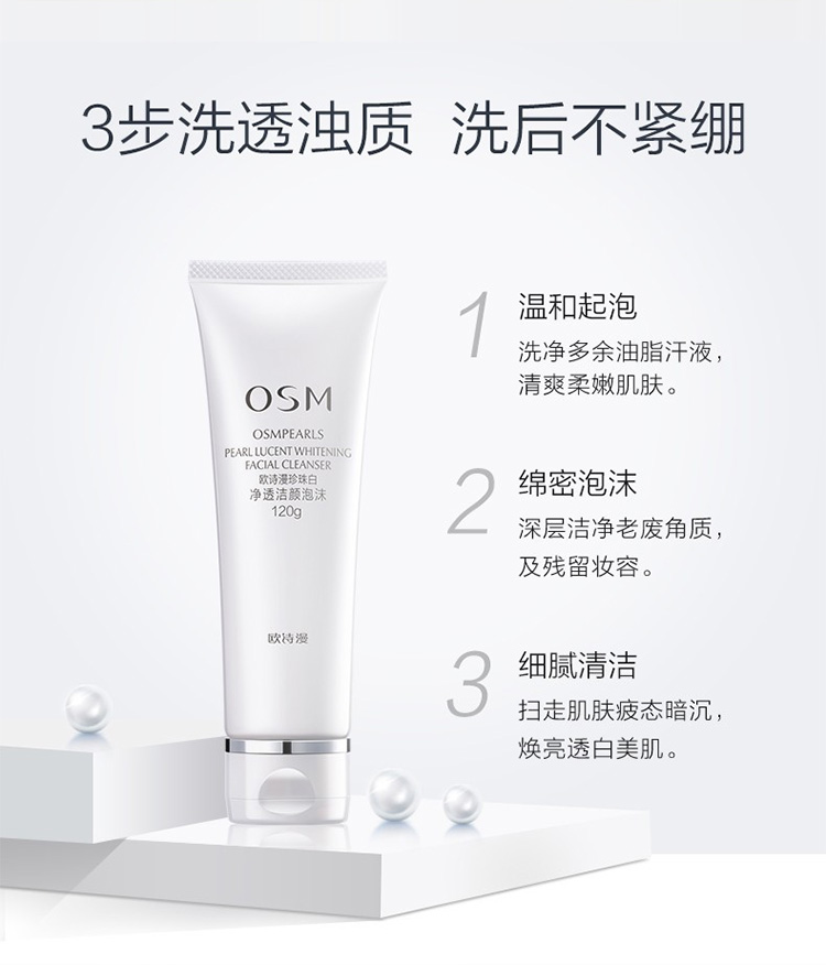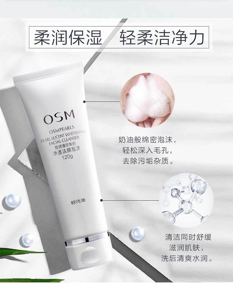 欧诗漫 珍珠白净透洁颜泡沫 120g/支洗面奶女士洁面乳清洁深层面部美妆